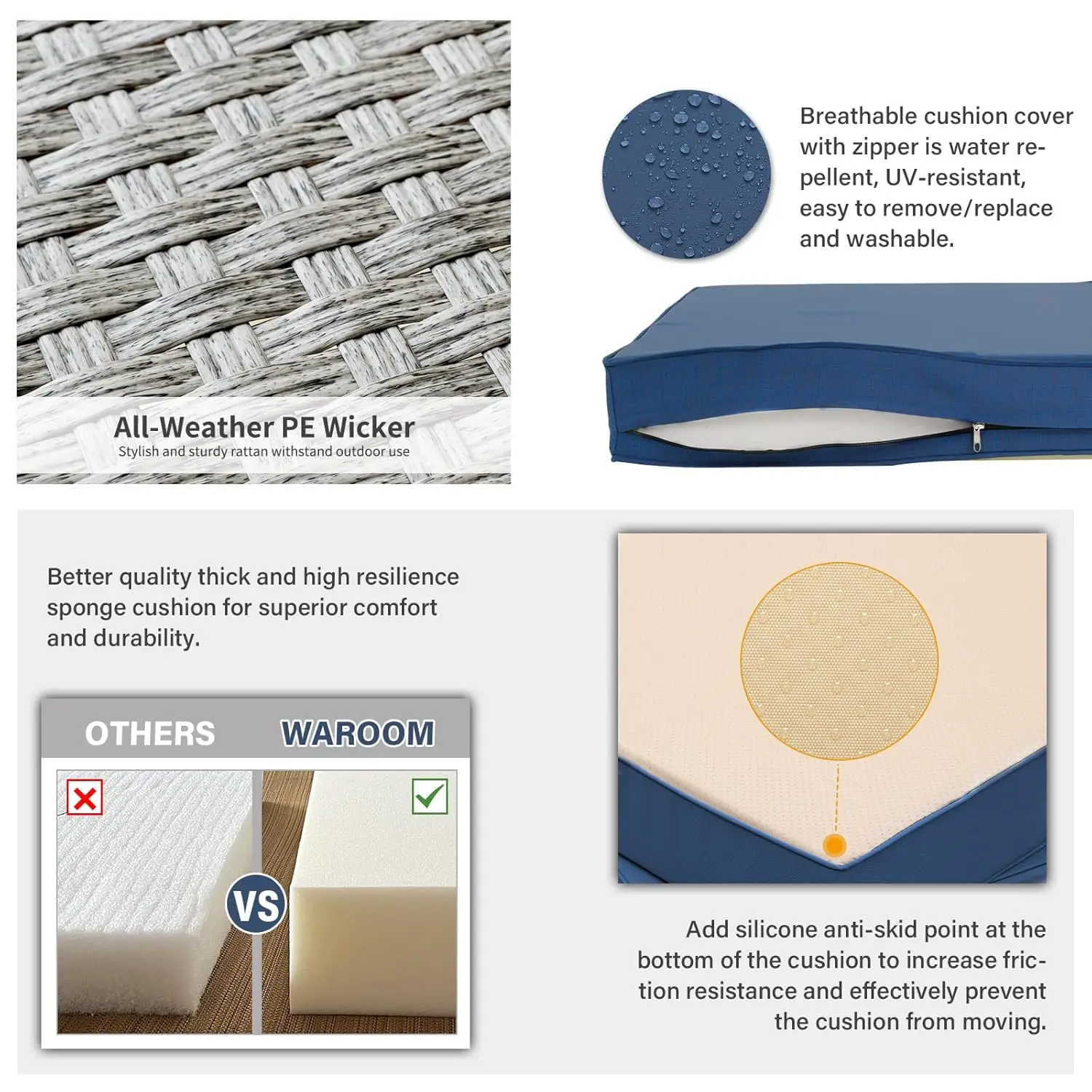 Comfortable: 4″ thick high resilience sponge-filled seat cushions for superior relaxation and comfort, with silicone anti-skid points to prevent movement. Breathable cushion cover with zipper is wear-resistant, water-repellent, UV-resistant, and high color fastness