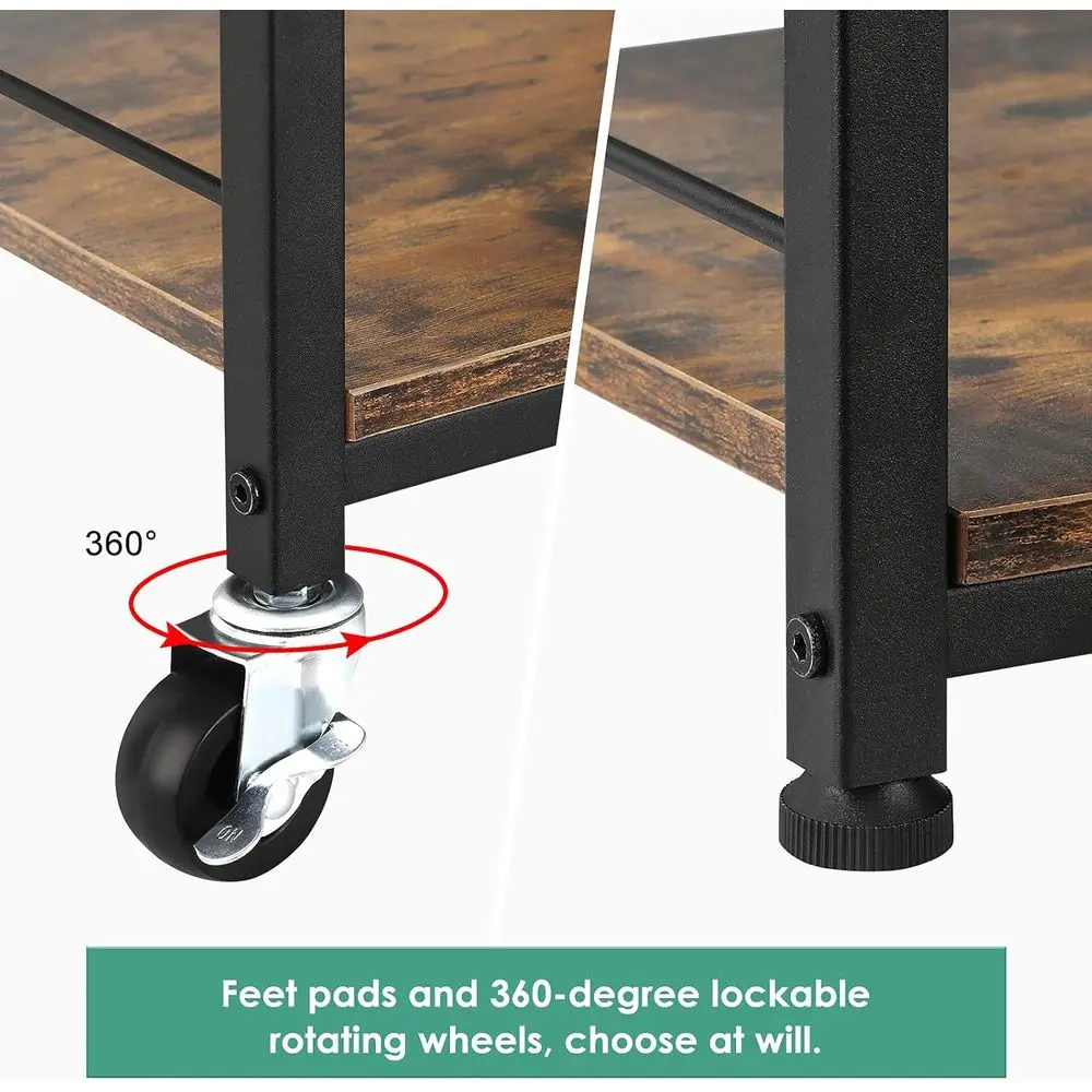 Able to Bear 200 Pounds:Compared with other standing kitchen shel unit with plastic wheels, the wheels o our cart on wheels or kitchen are mainly made o high-quality metal, which is more sturdy. Each shel can carry up to 50 pounds, and the maximum load is about Is 200 pounds. The 360° wheel design allows you to move heavy objects quickly. Two o the wheels are equipped with locks, mg it convenient or you to ix the position in daily use