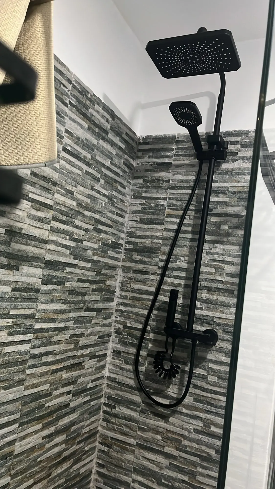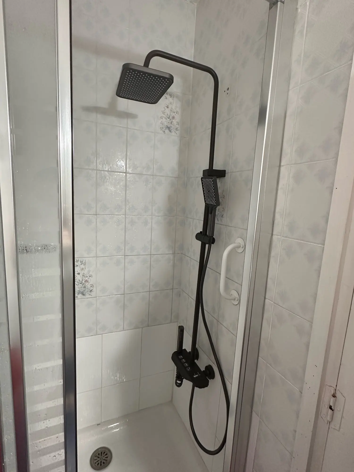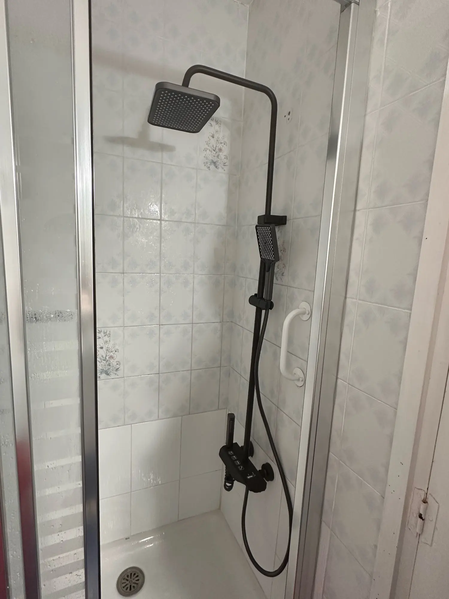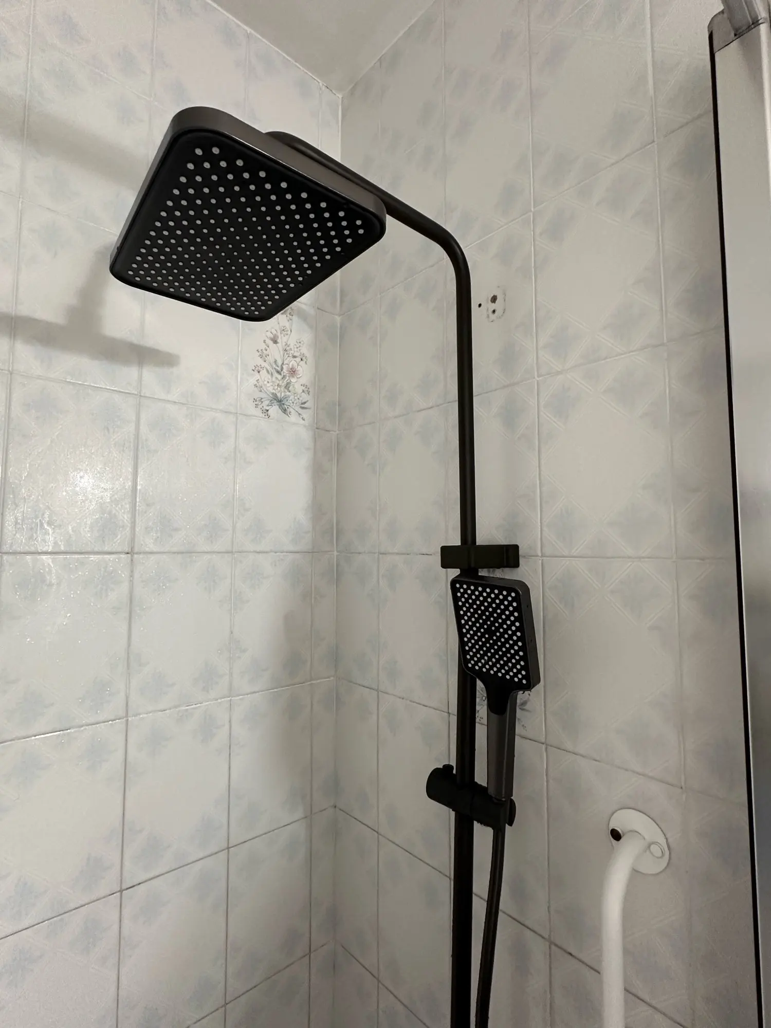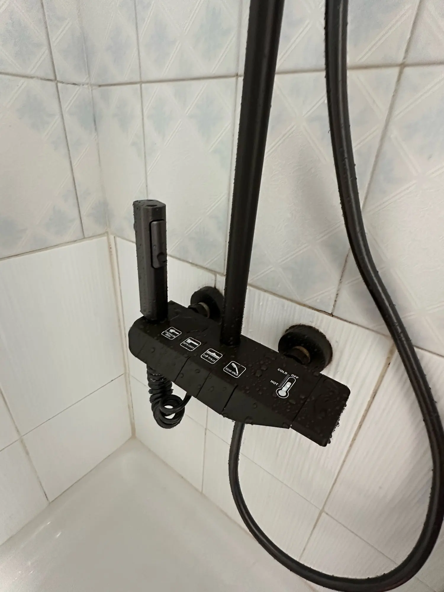 Super shower set! Only the system is made of stainless steel and the rest is plastic! Works great 😁