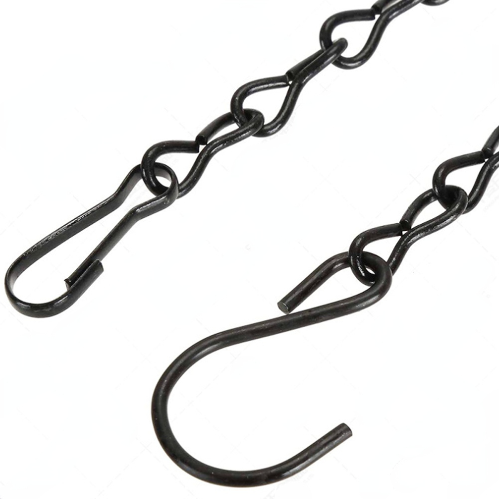 3. Our metal chain with S hook is perfect for hanging plant baskets, metal planters, plastic baskets, wicker boxes, bird feeders, lanterns, wind chimes, etc.