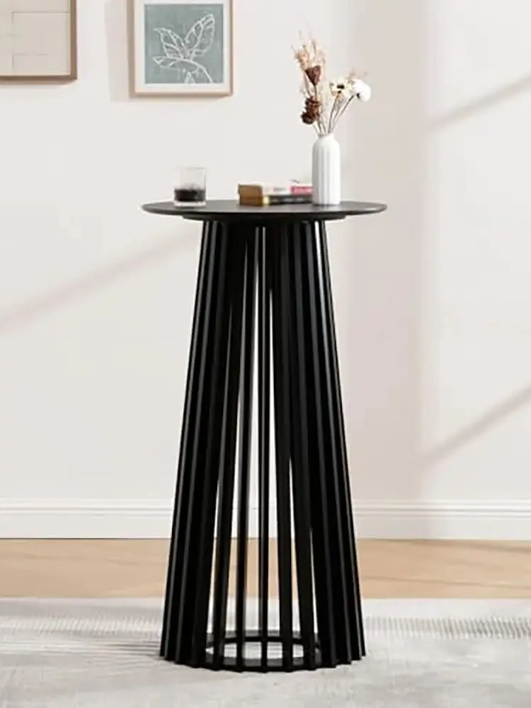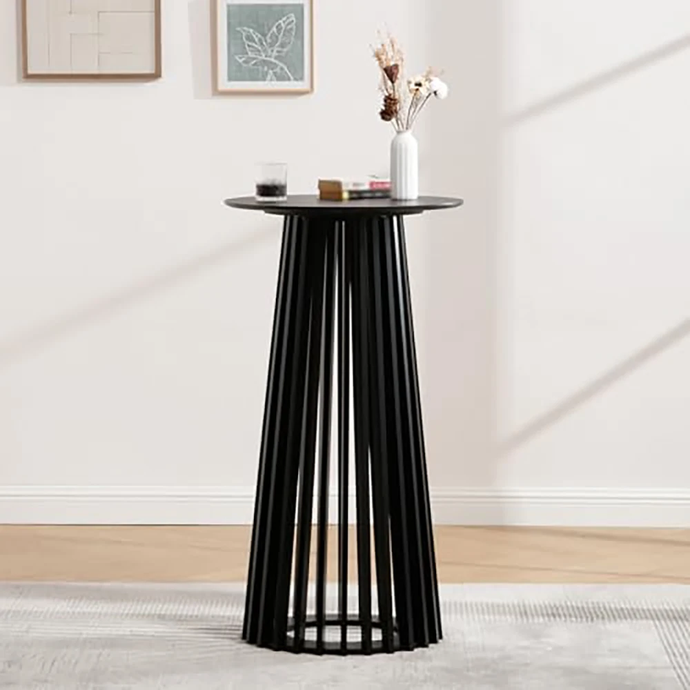 43.5″ High Black Round Bar Table with Geometric Base, Modern Cocktail Table for Kitchen Dining Room Coffee Shop
