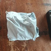 The item is wrapped in a zip sealing bag overpacked under a small cardboard box..