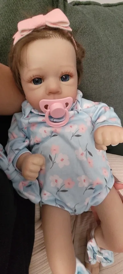 15 reviews for 46CM Finished Reborn Baby Doll Felicia Newborn Open Blue Eyes Doll Soft Hand-Rooted Hair 3D Skin Tone Visible Veins Gift Toy