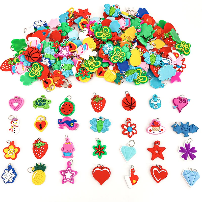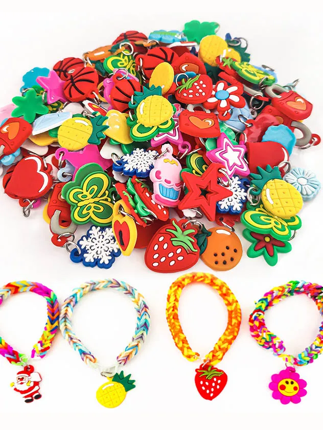 48pcs Pendants DIY Colorful Loom Rubber Band Bracelet Jewelry Making Beads Toy Colorful Animal Flower Beads Random Style 2023
