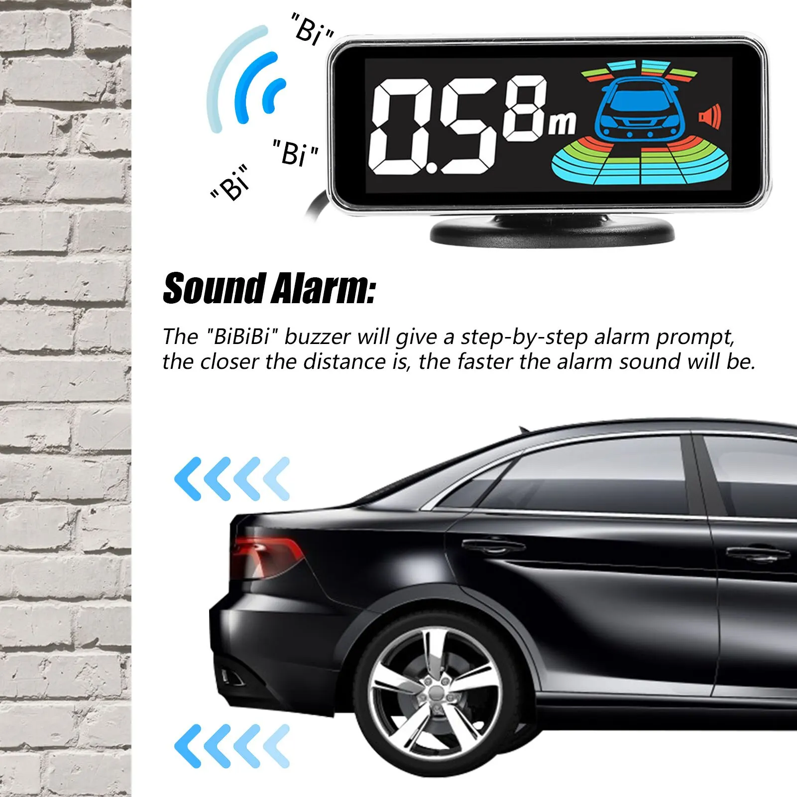 Sound Alarm:Â The “BiBiBi” buzzer will give a step-by-step alarm prompt, the closer the distance is, the faster the alarm sound will be.