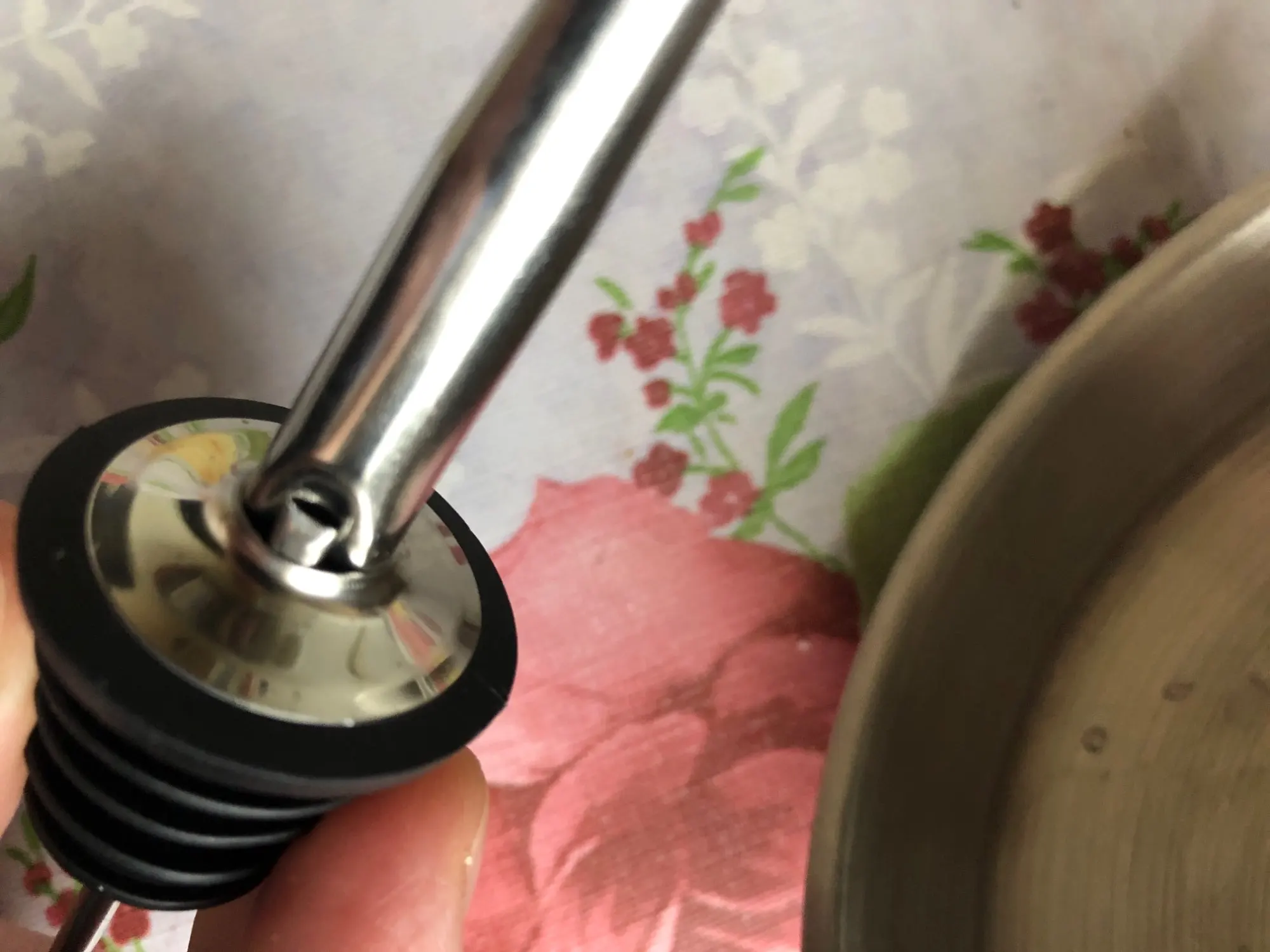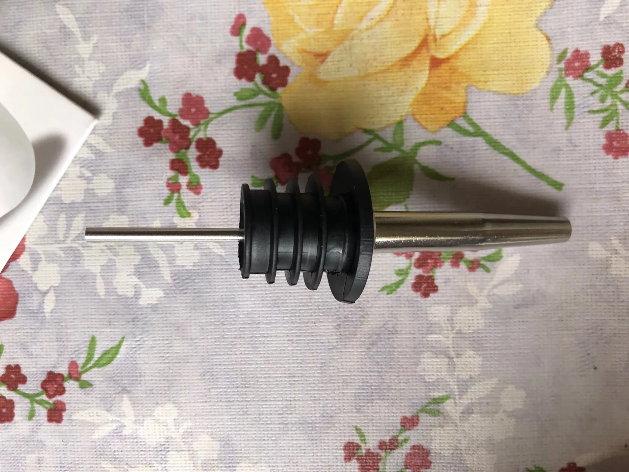 Good solid bottle top stopper. Pours out liquids nicely. Great price, also.