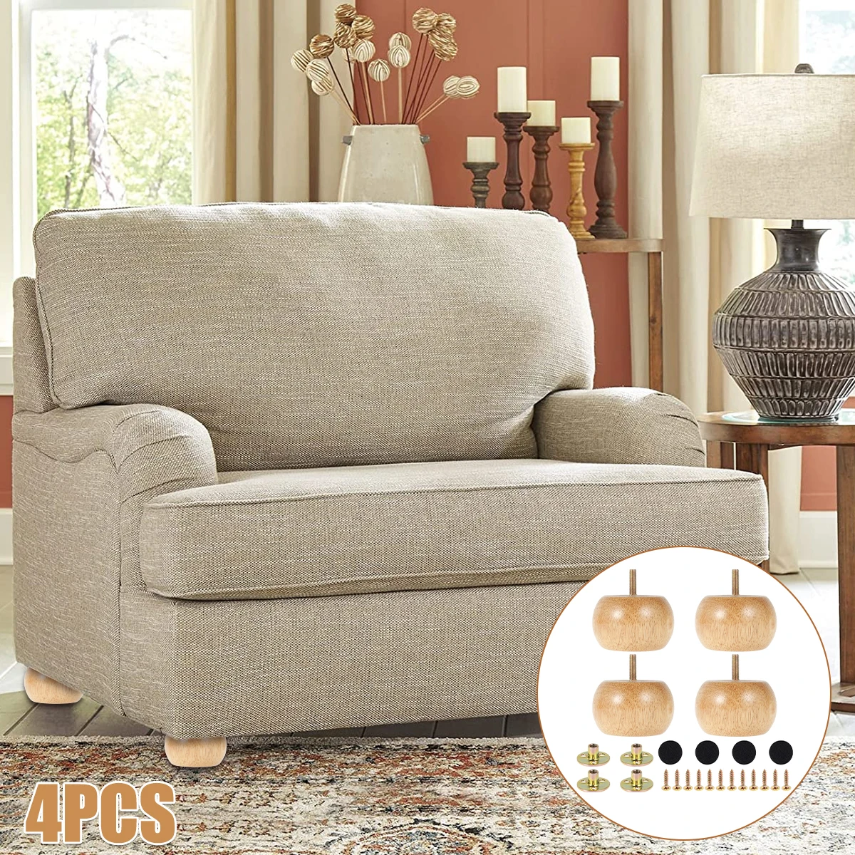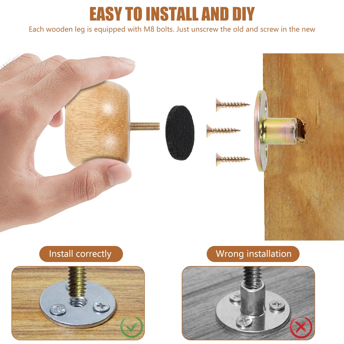 1.High quality: 4 rubber wood furniture legs, painted, durable, shiny feeling.