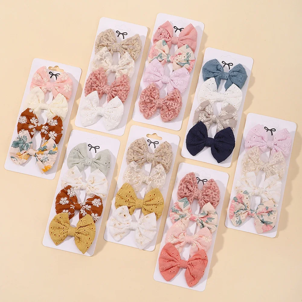 4Pcs/Set Lovely Cotton Bowknot Clips Safe Hairpins Girl Fresh Pastoral Hairclips Baby Hair Accessories Kids Print Hairgripe Gift