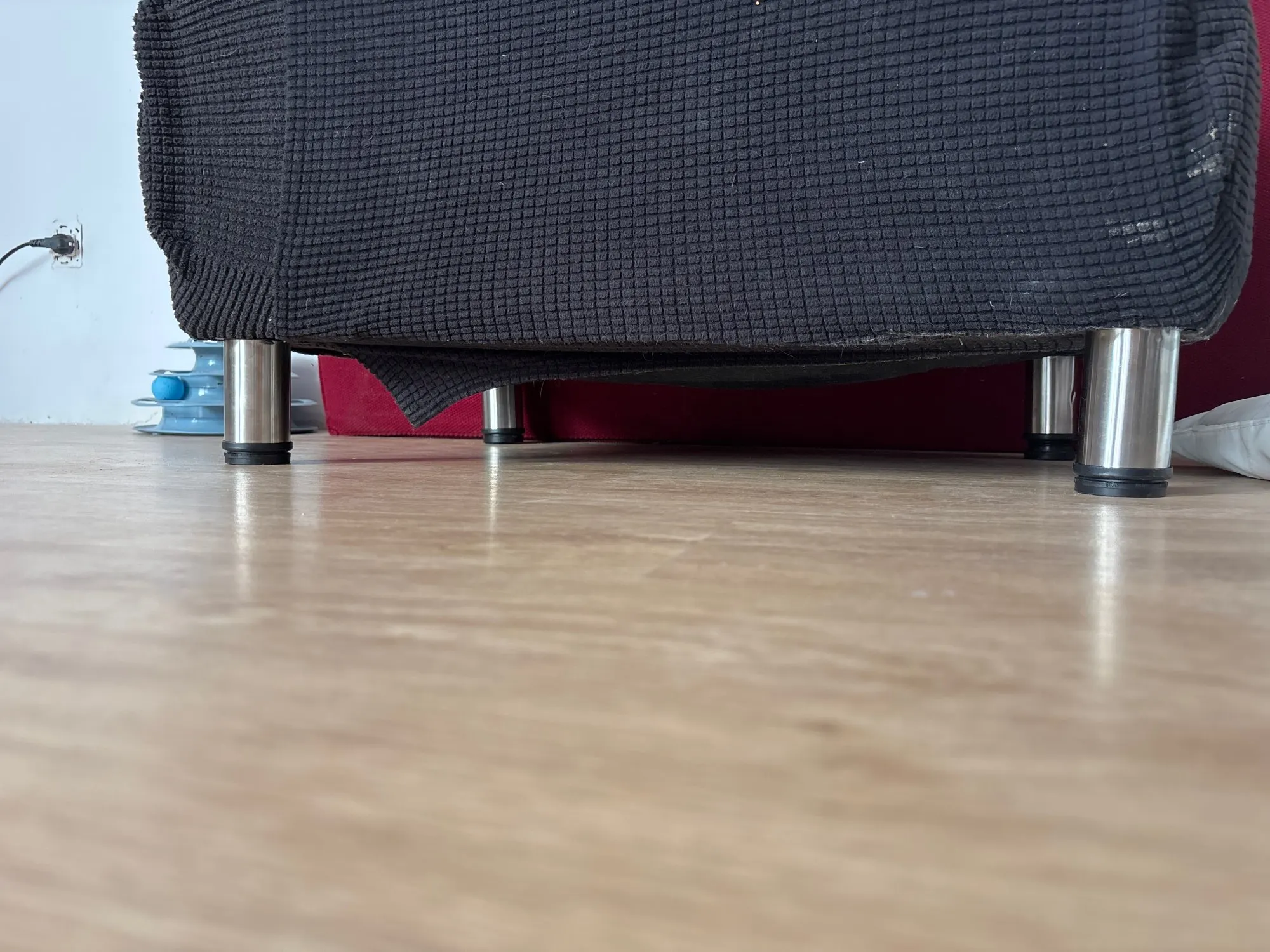Today, I attached the sofa with wood screws to raise it by 10cm. It is very stable. You can also clean with a vacuum cleaner. It looks great too, which is the best.