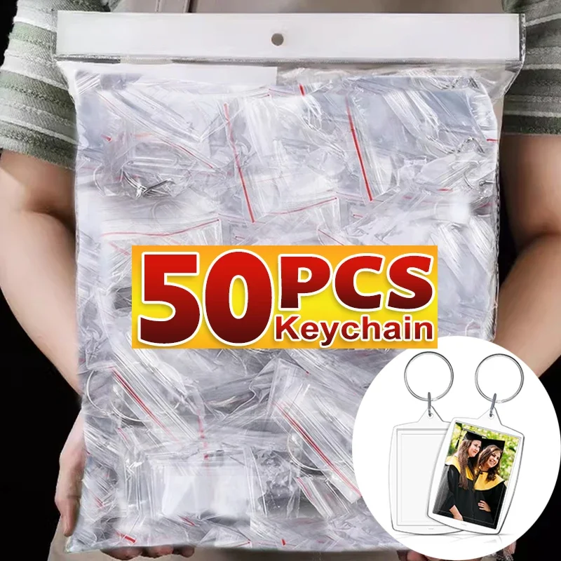 5/50pcs Transparent Rectangle Blank Clear Acrylic Insert Photo Picture Frame Keyring Keychain DIY Split Ring Key Chain 2035
