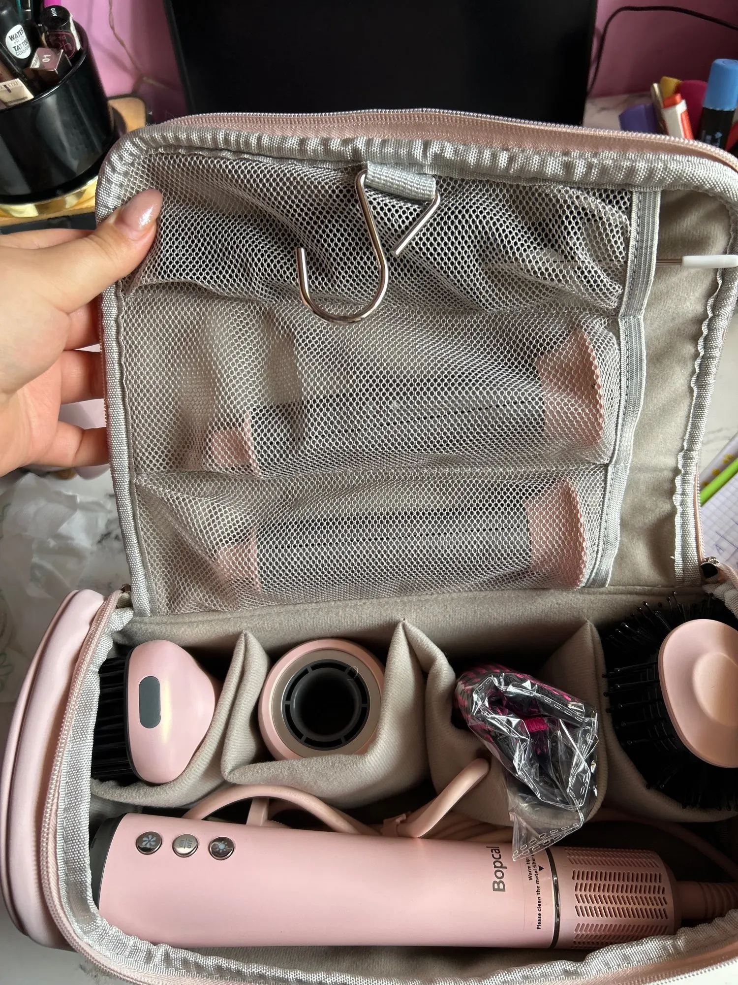 [Compact, Gift-Ready & Travel Friendly] – Unlike bulky tools that hog counter space or come with no case at all, this set includes a sleek, waterproof storage bag for easy organization. Lightweight and stylish, it keeps your hot-air hair brushes and accessories tidy—perfect for travel or thoughtful gifting.