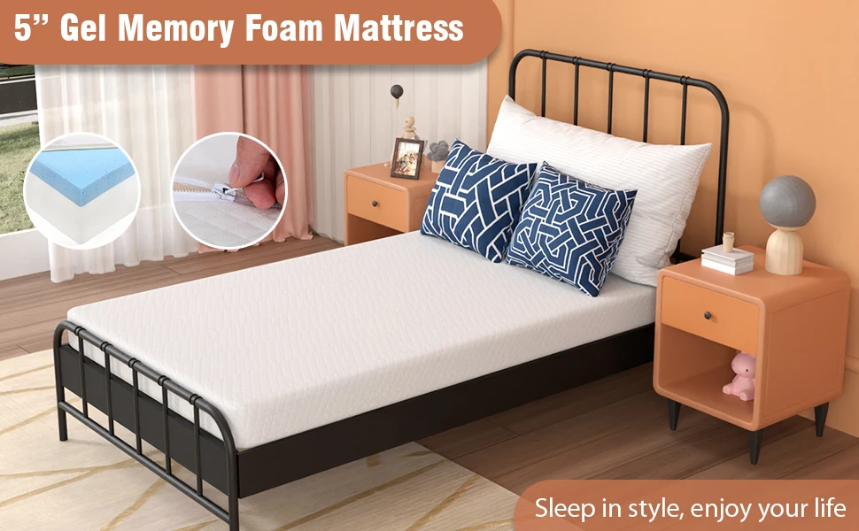 5 Inch Twin Gel Memory Foam Mattress Fiberglass Free/CertiPUR-US Certified/Bed-in-a-Box/Cool Sleep & Comfy Support/Medium Firm m