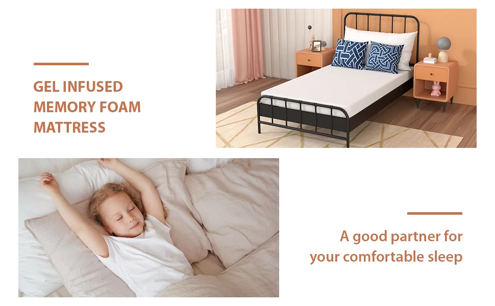 Our mattresses are made of 1-inch memory gel and 4-inch thick high-quality basic sponge. Elevate your sleep experience with our 5-inch design of gel memory foam mattress, featuring a luxurious 1-inch layer of cooling memory gel. Unwind in unparalleled comfort as the innovative design cradles your body, providing the perfect balance of support and plushness for a restful night’s sleep.