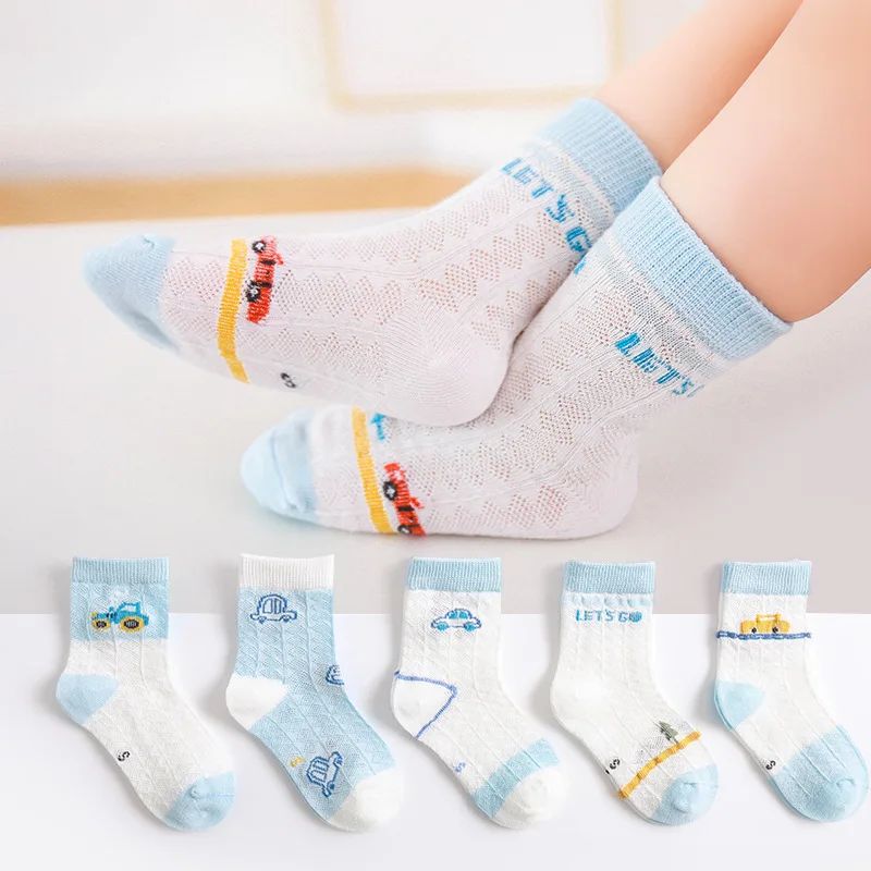 5 PAir Set Children Socks Summer Fishnet Boy Socks Spring Summer Thin Mesh Boat Socks Boys Girls Short Socks