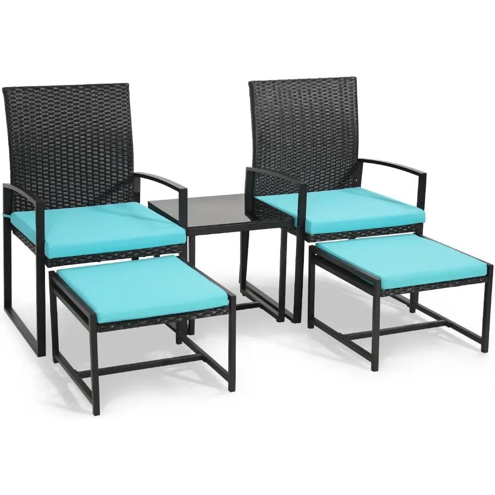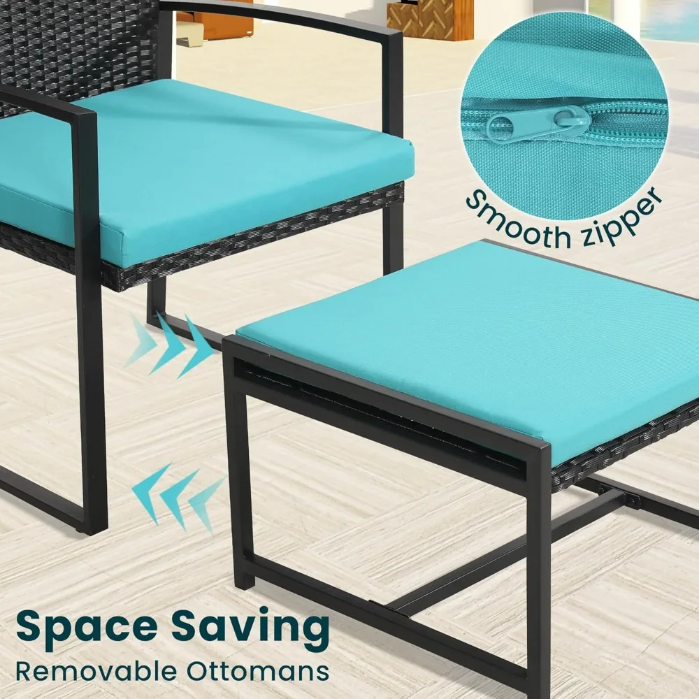 5 Pieces Wicker Patio Conversation Sets, Rattan Furniture Set with Coffee Table and 2 Ottomans, Ideal for Porch, Garden, Yard,