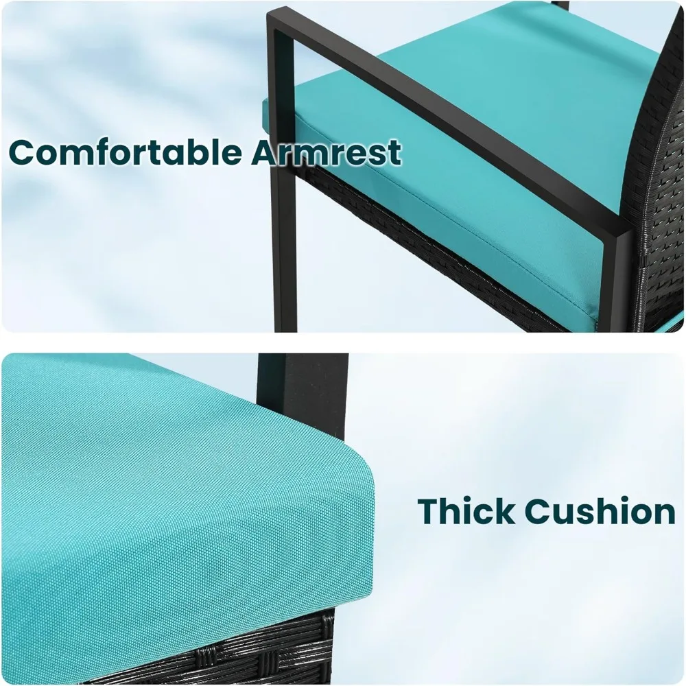 • 【FAST ASSEMBLY】Each 3 pieces bistro set includes 2 chairs, 1 coffee table with a tempered glass top, 2 overstuffed waterproof zippered cushions. Designed for simple, intuitive assembly with included tool and instructions. Of course, should you have any issue or questions our customer service team always responds quickly.