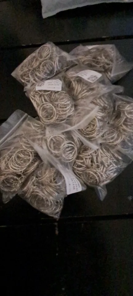 They have arrived at the indicated time. They come in zip bags in lots of 50 units. Some rings come loose, something that other reviewers have already mentioned.
