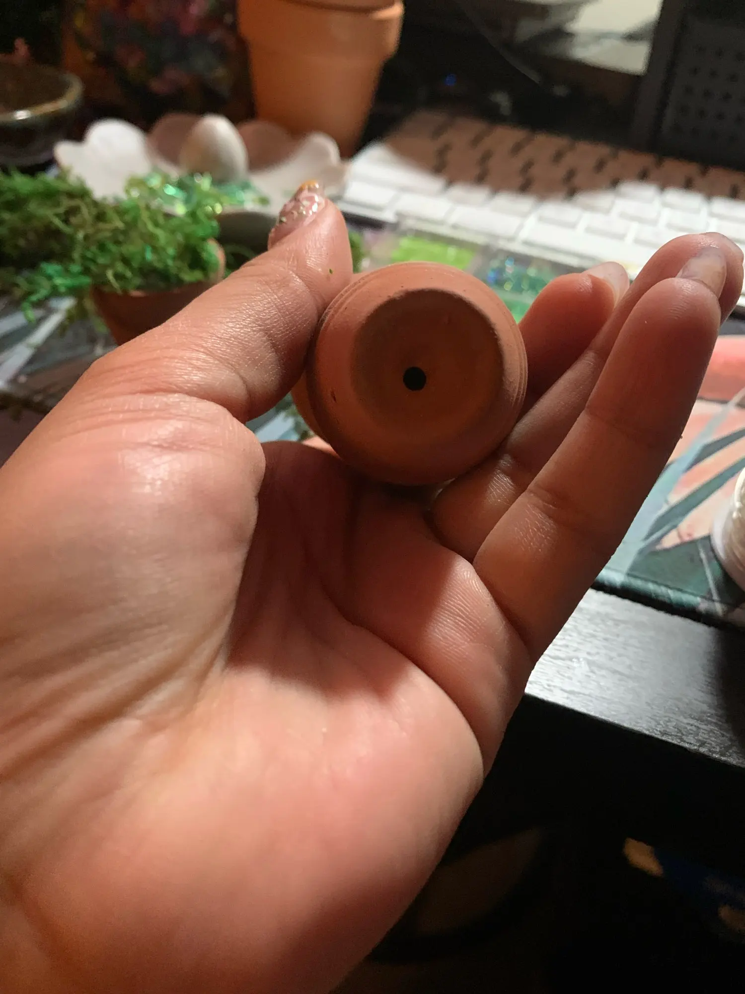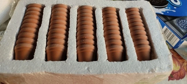 I absolutely adore these pots. I’m using them for a mini project and they are just the perfect size. I was worried these may be made out of plastic, but they are most definitely terra-cotta pots, and though i am using these for artificial plants, they do have a hole in the bottom for anyone wondering about drainage for real plants. The pots are about the size of an overly large thimble. So they are really only for tiny sprouts anyway. I much prefer these for crafting, and i think i’ll make a great use out of them. Every single pot survived the great styrofoam packaging, despite my worries. I am in love with these, and i’ll make great use of them!
