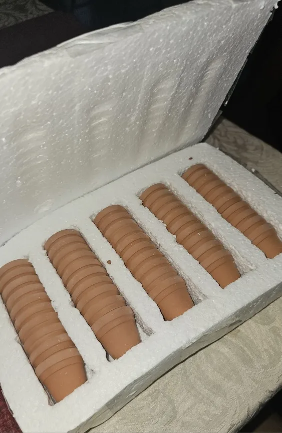 Everything arrived well protected, they are made of clay and have a drainage hole.