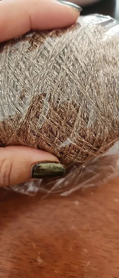 Just as described in the publication, this is the second time I have bought this type of golden thread. Its appearance is beautiful. For those who use it for knitting, I suggest accompanying it with a second strand of another material as it tends to unravel.