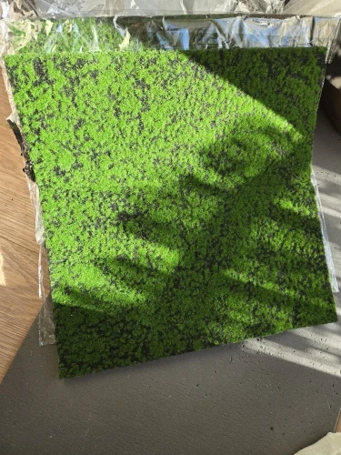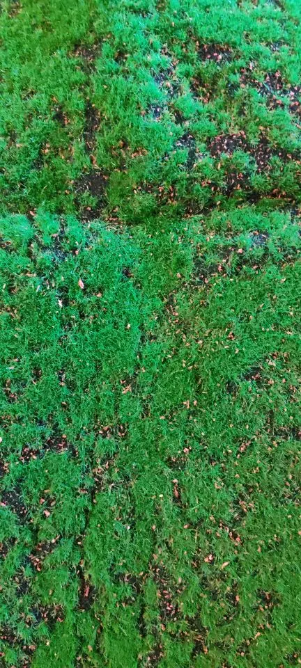 Tips: In order to more realistic effect, moss using flocking technology, will be a little bit of hair, fall is floating hairs, floating hairs can be sprinkled in the seams.It will not affect the use of the moss.