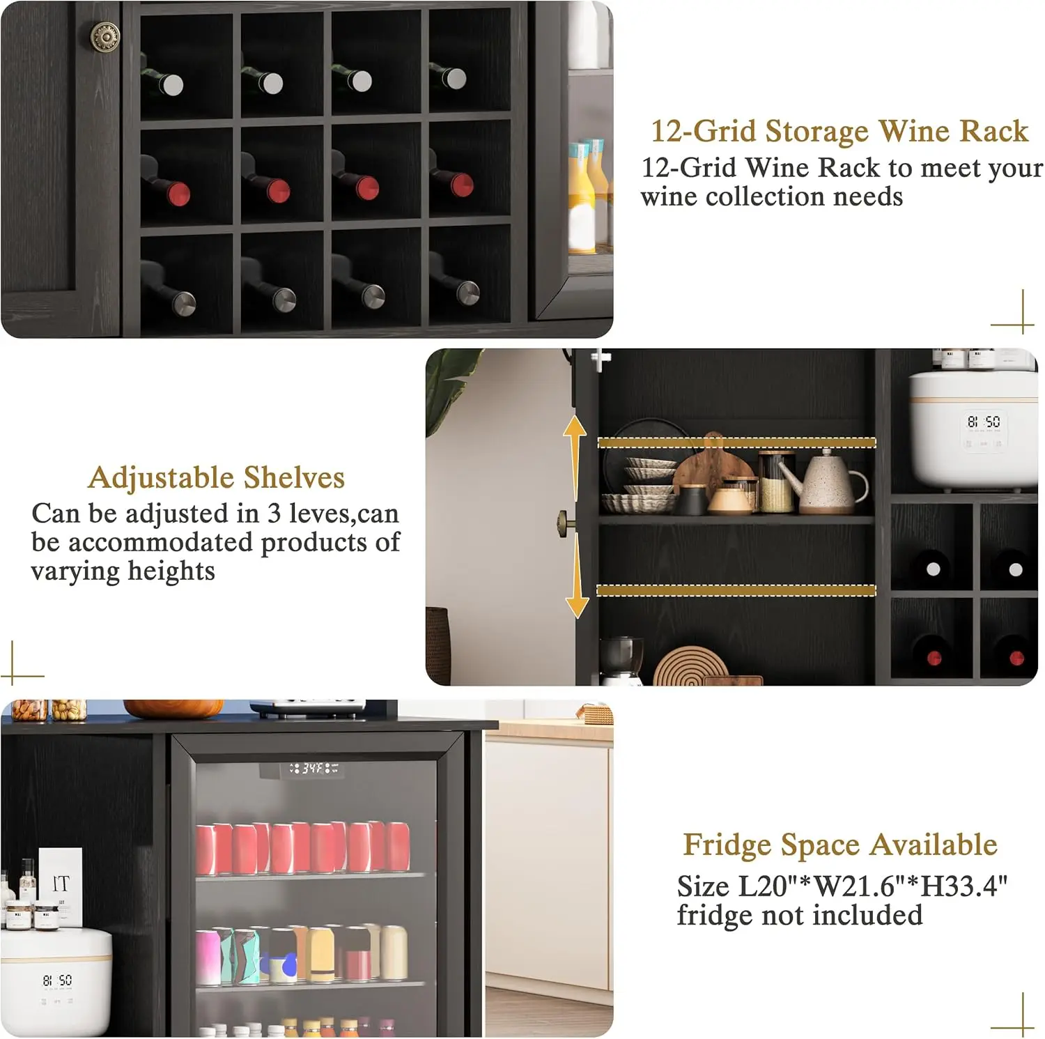 Be the first to review “55″ Farmhouse Wine Bar Cabinet with Mini Fridge Space, LED Lights & Power Outlet, Black Kitchen Buffet Hutch for Living Room” Cancel reply