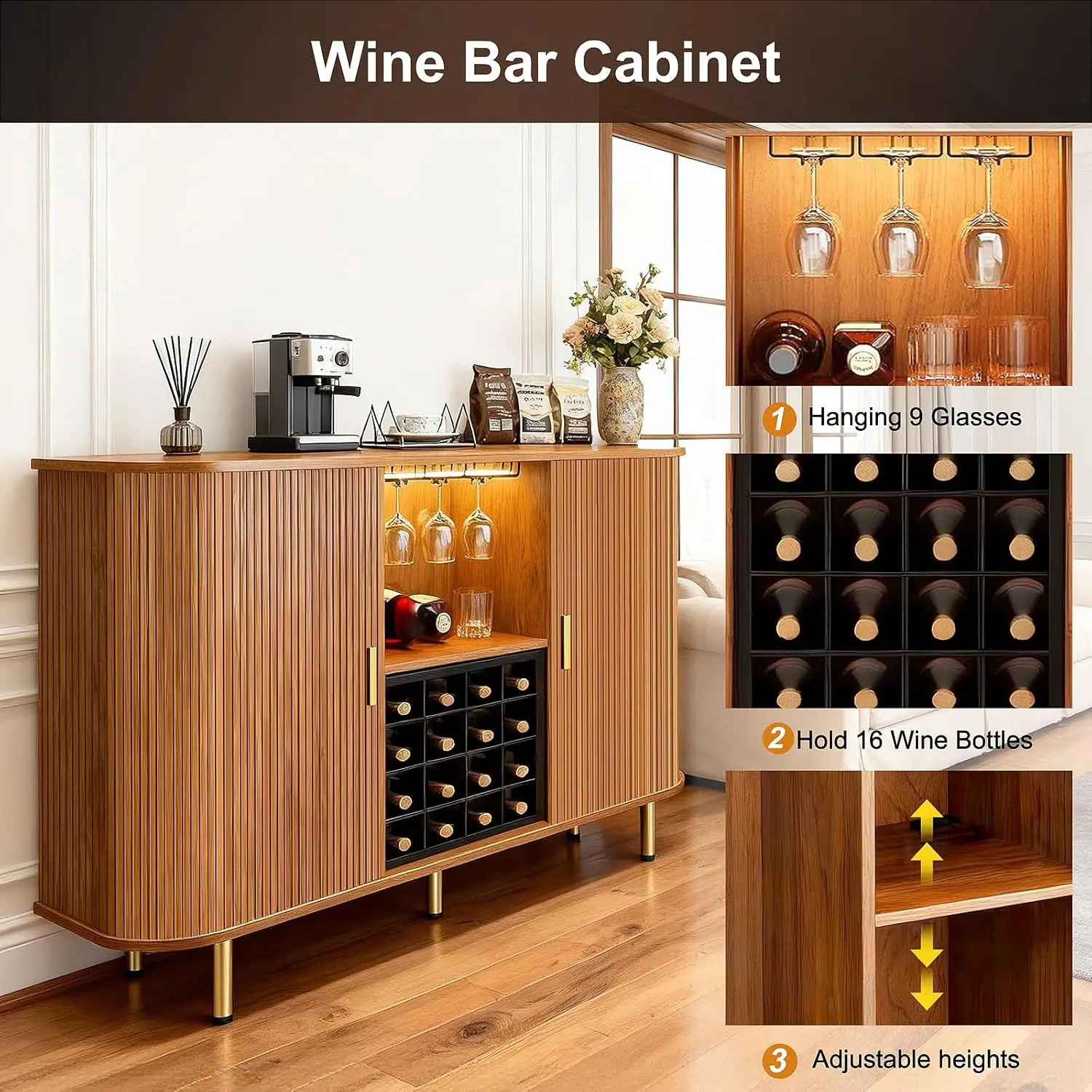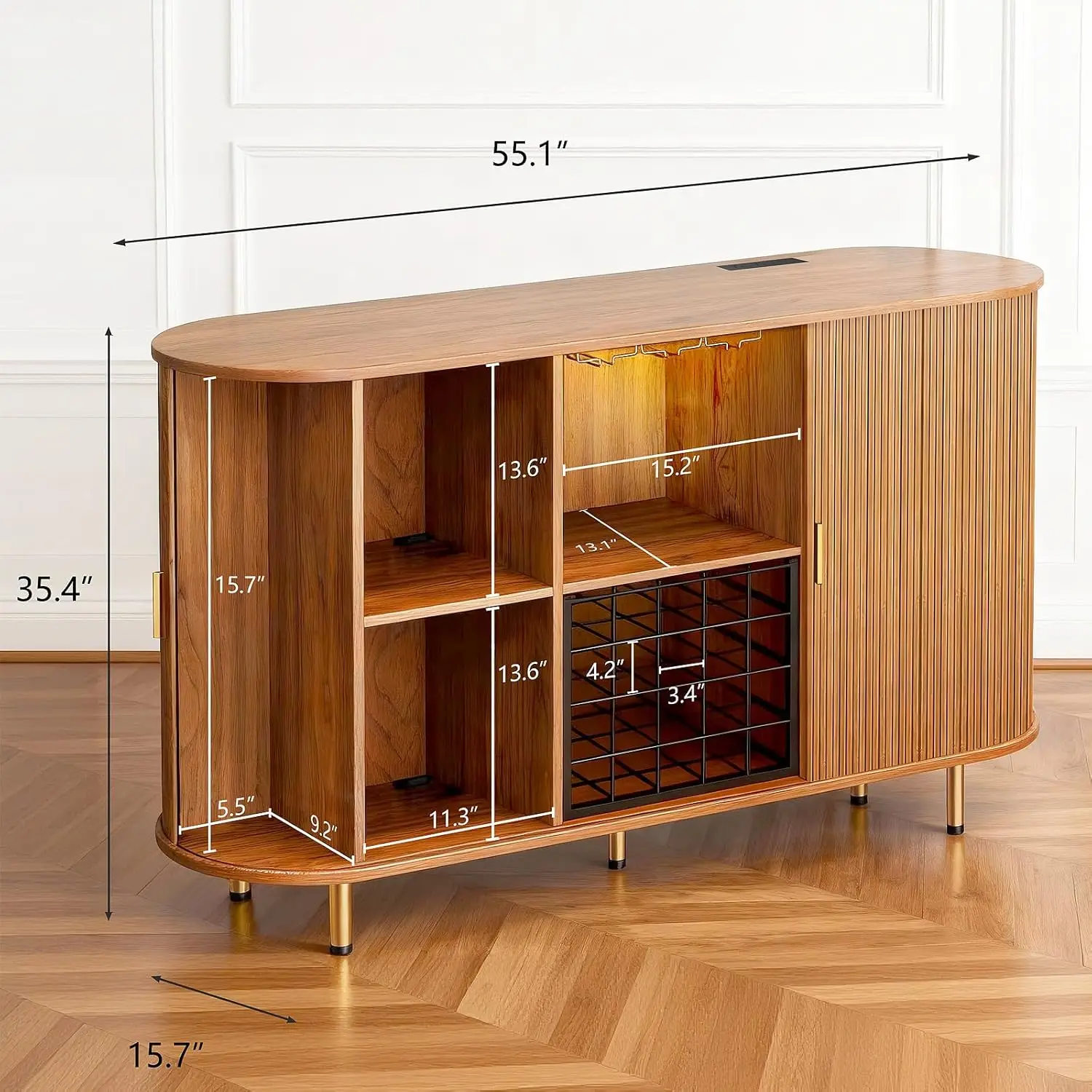 55-Inch Modern Wine Bar Cabinet with Storage, LED Lights, USB Ports & Adjustable Shelves for Kitchen, Living Room