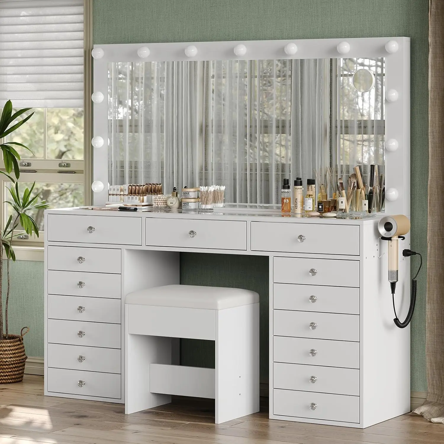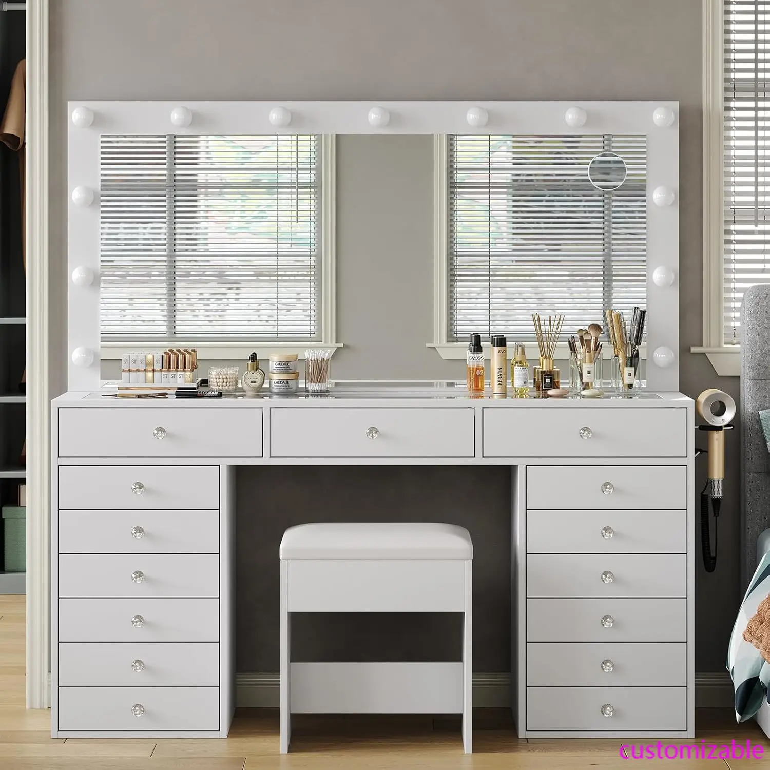 - Ultimate Beauty Organizer: Tired of cluttered cosmetics? Our vanity with lights is here to revolutionize your beauty routine! With 15 spacious drawers, this makeup vanity offers ample storage for all your makeup, skincare, and haircare products, ensuring your beauty space stays organized and clutter-free