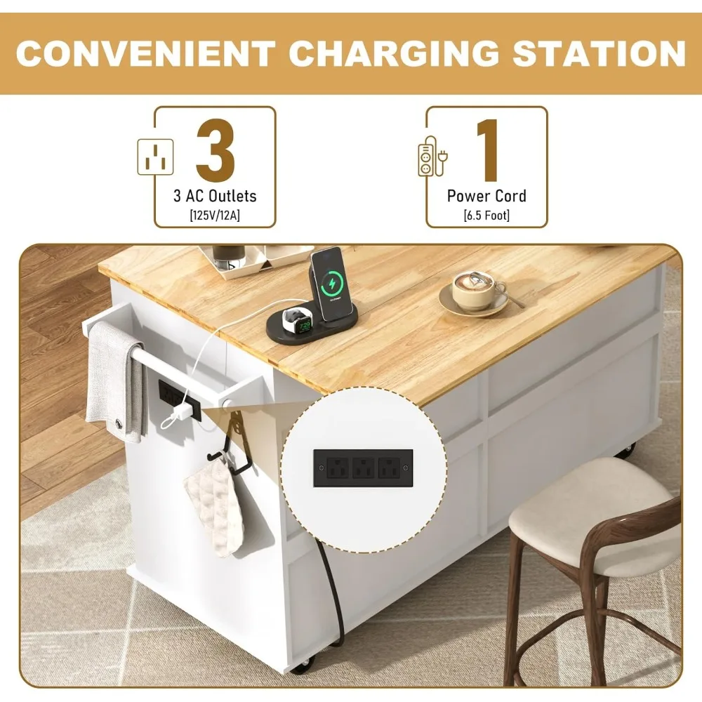 59 W Rolling Kitchen Island with Drop Leaf – Movable Kitchen Carts on Wheels Island with Storage Cabinet, Island Table