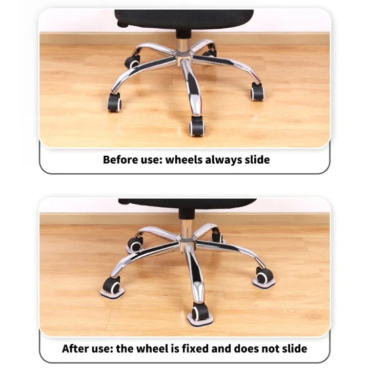 The office chair wheel stopper is as described and works. It keeps my office chair in place, preventing it from rolling around. The stoppers are sturdy and fit the wheels well. Overall, a simple yet effective product—satisfied!