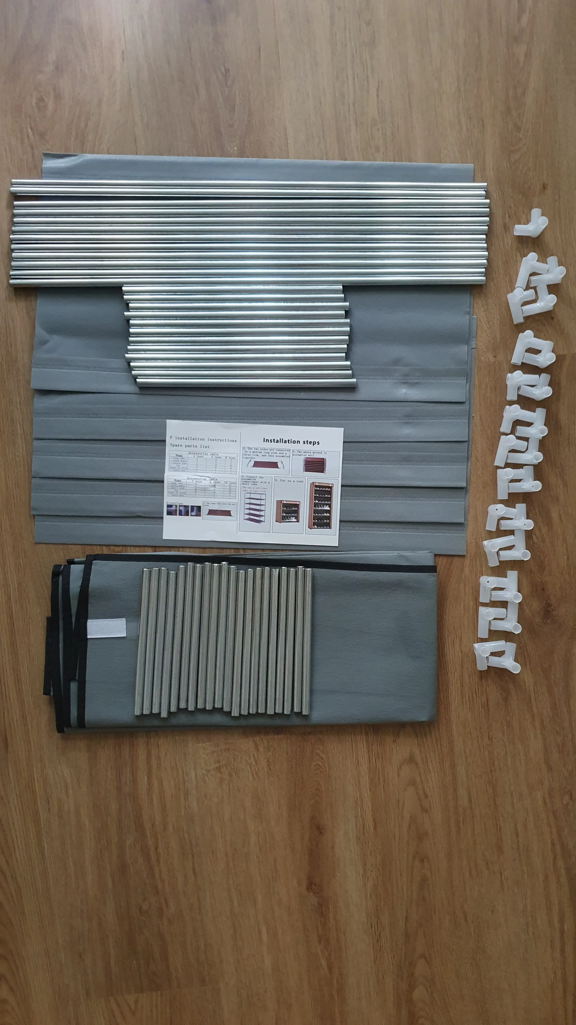 An extra shelf pipe shoved through the bottom of the ‘door’ would make rolling up more easy and add weight to drop the flap into place.