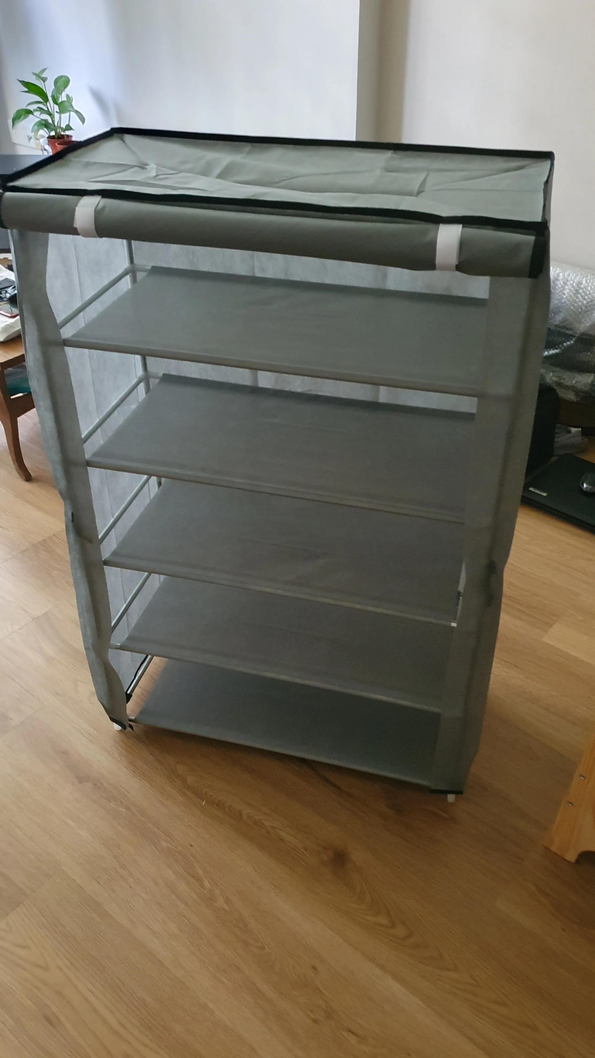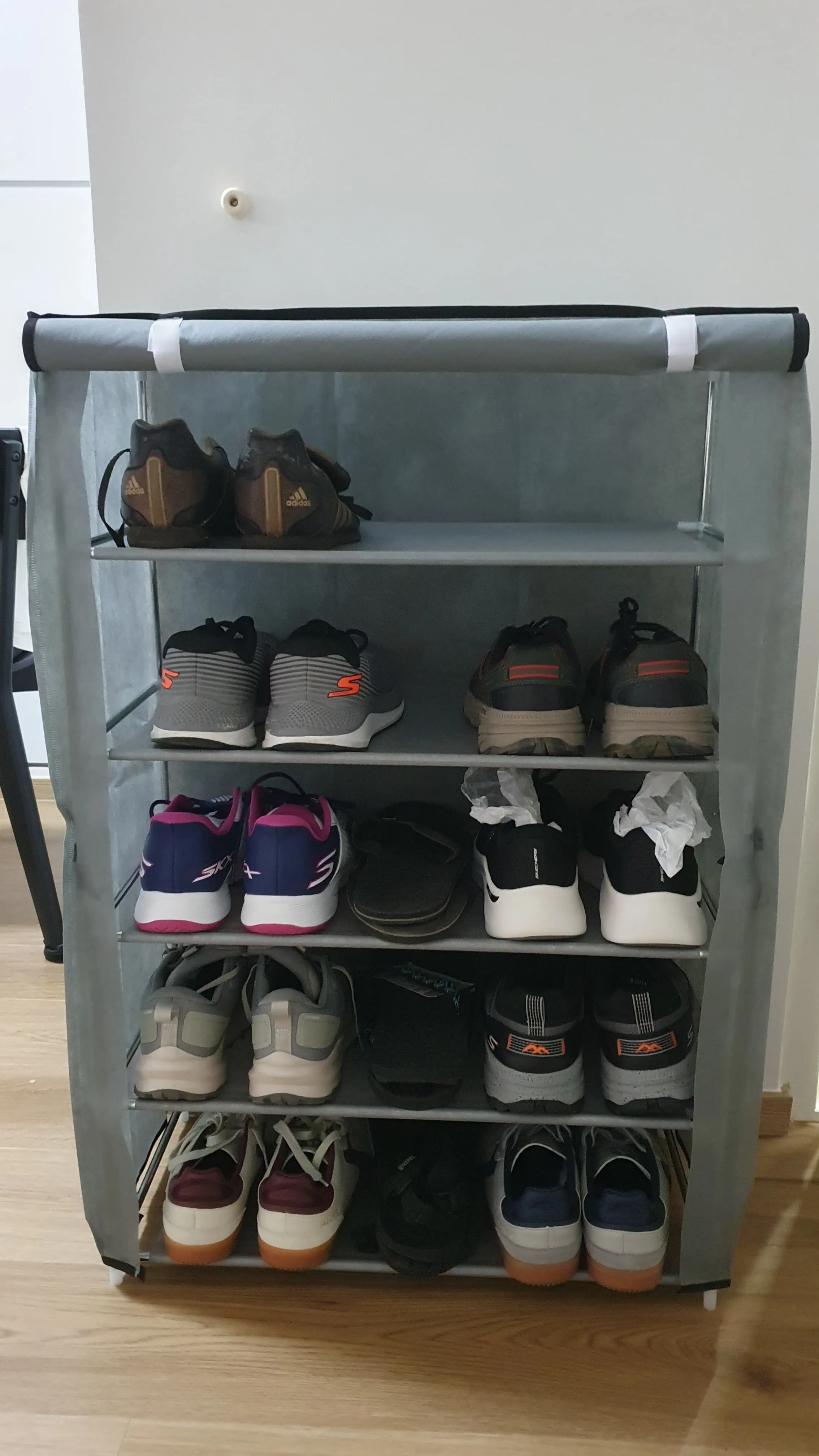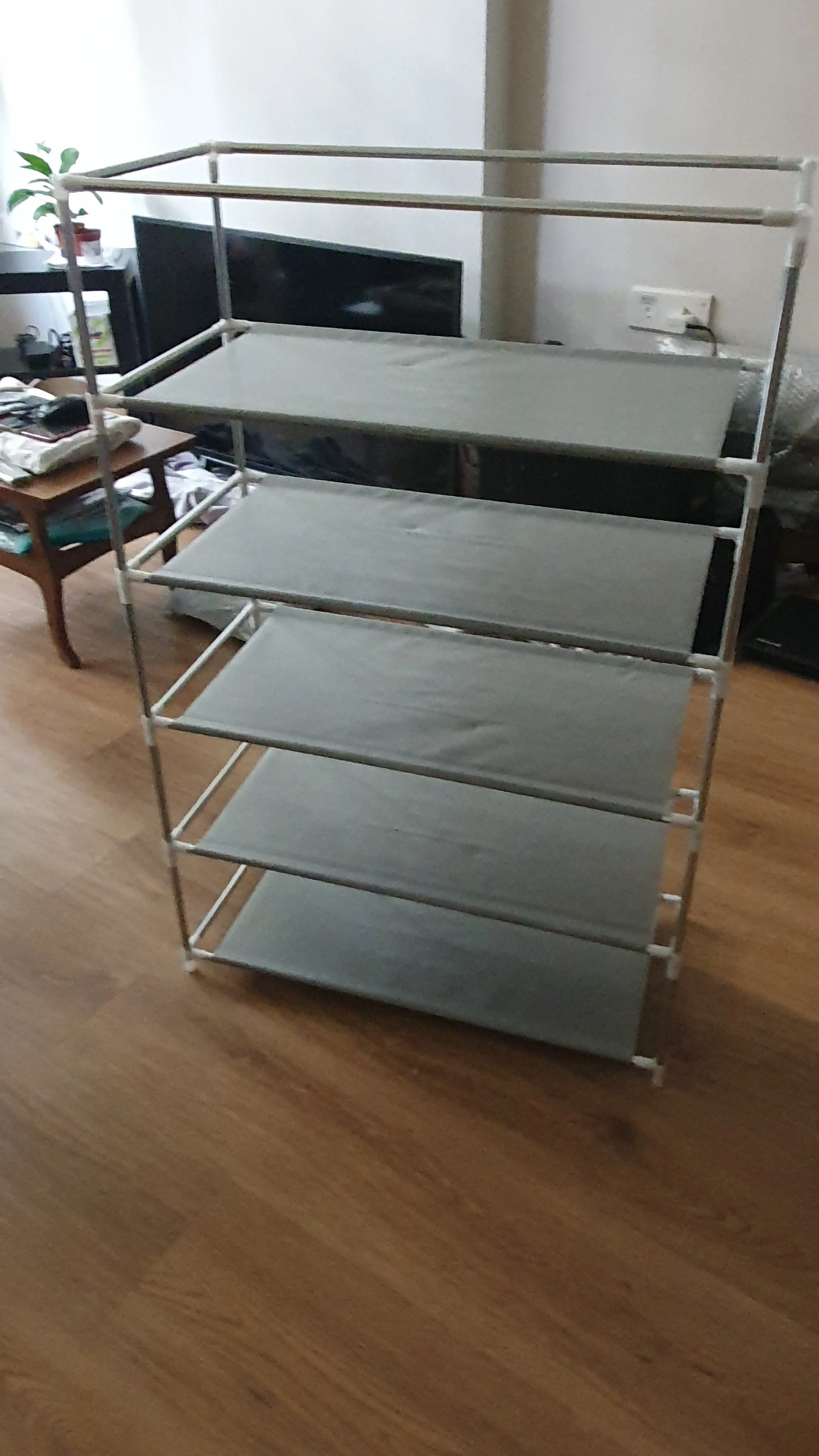 Ordered on 13 mar, received on 17 mar via doorstep delivery. Items came intact and quantity correct. I set up the shoe rack according to the visual instructions. Each level can place 2 pairs of shows instead of 3 pairs as advertised unless your shoes are smaller in sizes. Try placing your shoes over the 2 long supporting poles as the fabric might not hold well, especially for heavier shoes. Don’t place anything on the top level as there is no supporting fabric, only the main cover. One suggestion is to place a thick cardboard on the top level under the main rack cover.