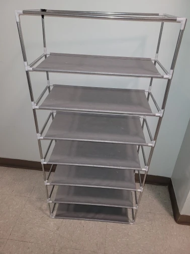 A light weight shoe rack or whatever you may want to use it for. Product was missing a white corner joint so i used some electrical tape to join the bars at one of the corners. To the ladies who have more shoes than this rack can handle, you can buy two of them and make a 20 storey shoe rack!!! !