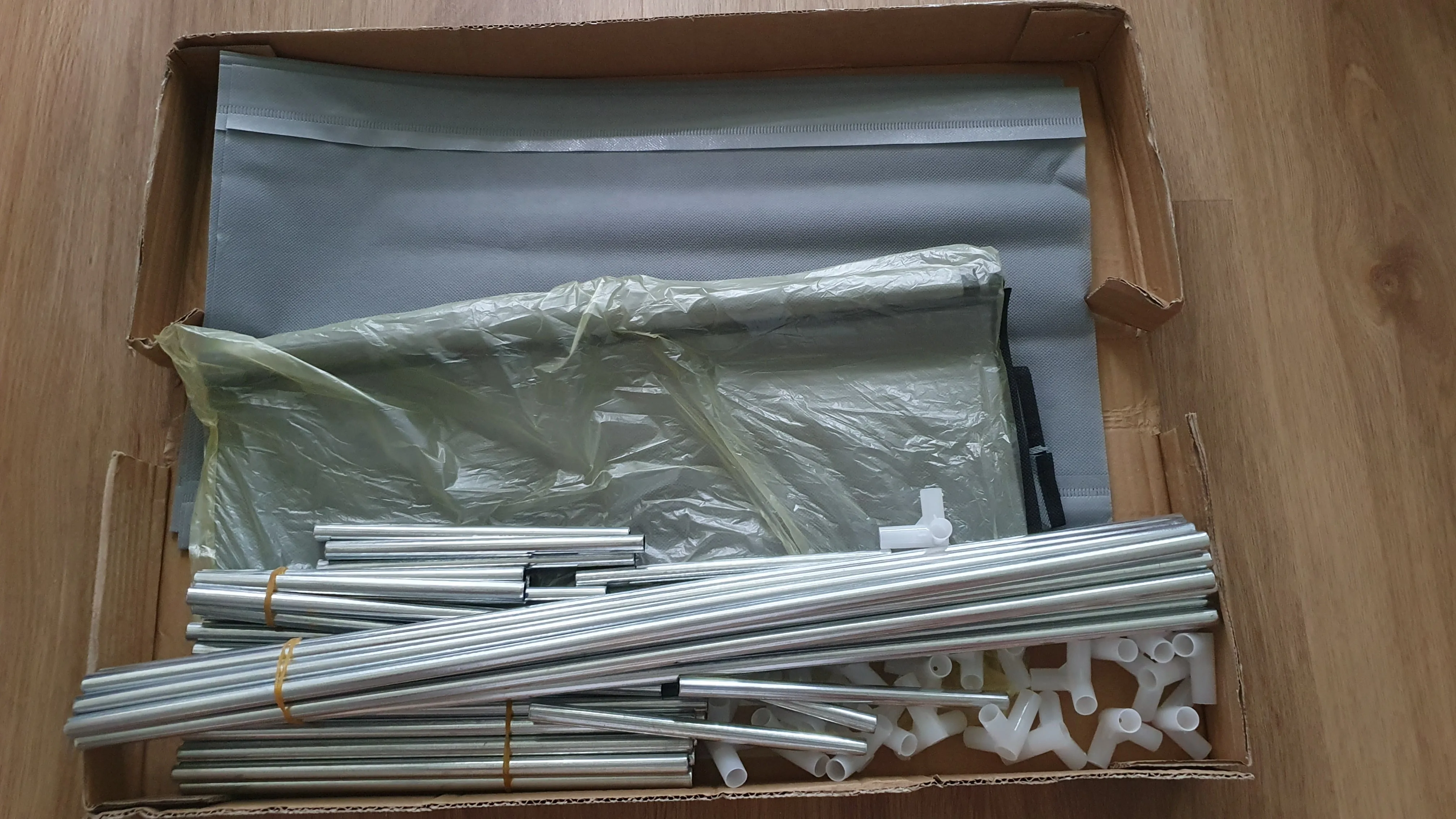 The product arrived quite quickly. The shelves and cover are made of a very delicate fabric. So you need to be careful when assembling it. It’s very easy to assemble, the cabinet is very useful and looks just like the picture on the website. You need to try not to shake it too much and it will last. I highly recommend it. I’ve already seen similar products being sold in expensive stores for four or five times the price.