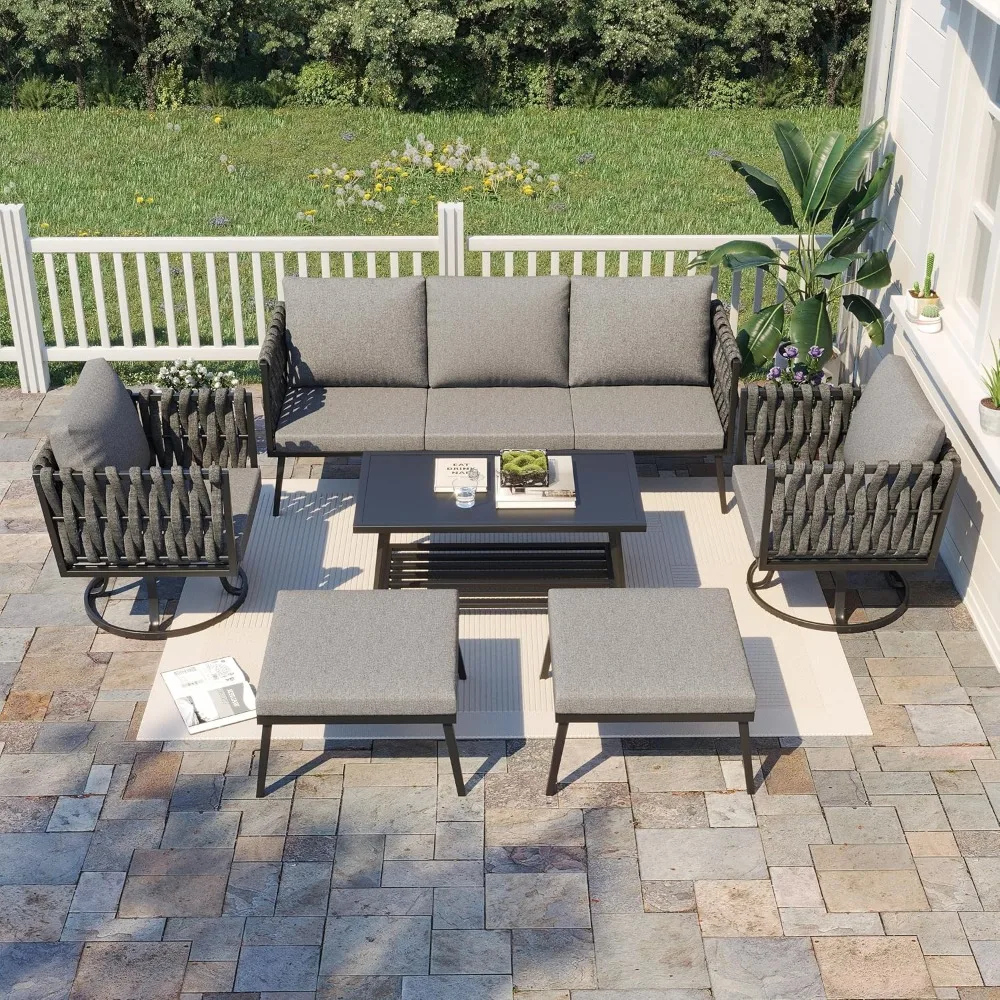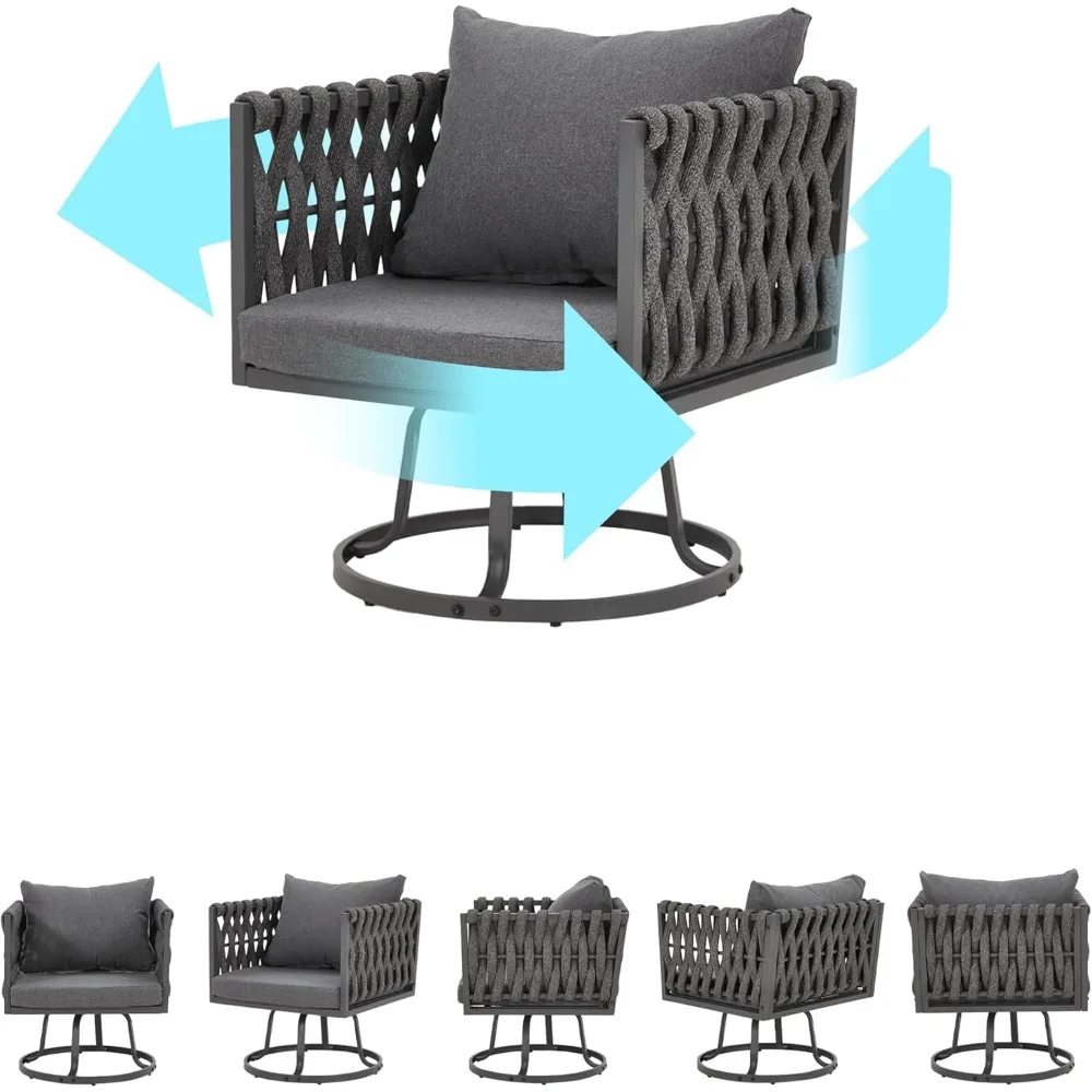 Unique Rope Craftsmanship: The aluminum patio set featurs intricately woven rope detailing on the backrest and armrests, adding a distinctive and stylish touch to your outdoor decor. The high-quality rope is less prone to fading, cracking, or warping compared to traditional rattan furniture, ensuring long-lasting beauty and durability.