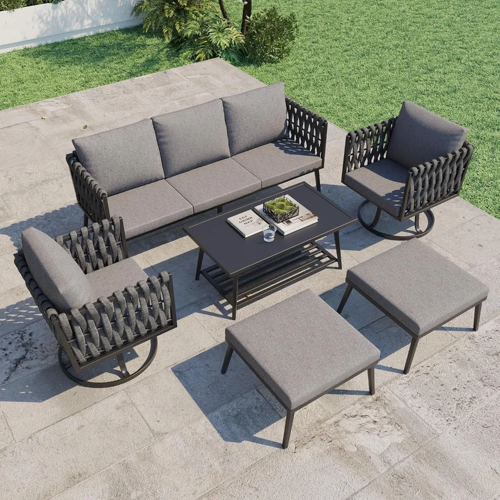 6 Pieces Metal Patio Furniture Set, Outdoor Aluminum Furniture Woven Rope Modern Patio Conversation Set for Balcony,Garden,Yard