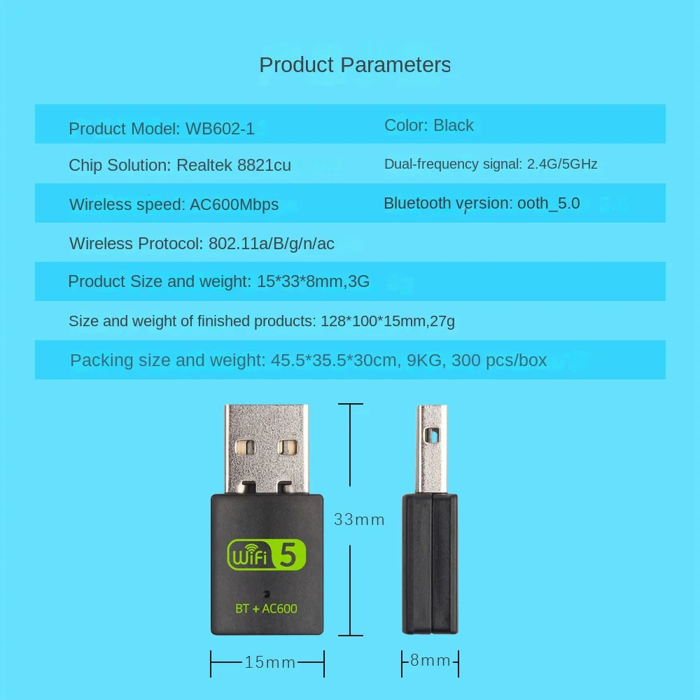 600m dual-band Bluetooth wireless card 2.4g/5g computer wireless USB Bluetooth wifi 2-in-1 wireless card