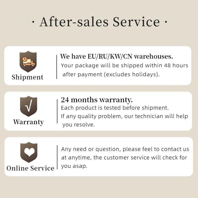 ●Shipment and Aftersales (24 months warranty):
