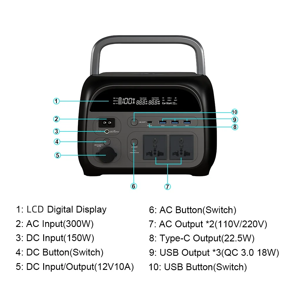 This Power Station with Mutiple Protections which is more safe and durable, and its life cycles is 3000+ times.