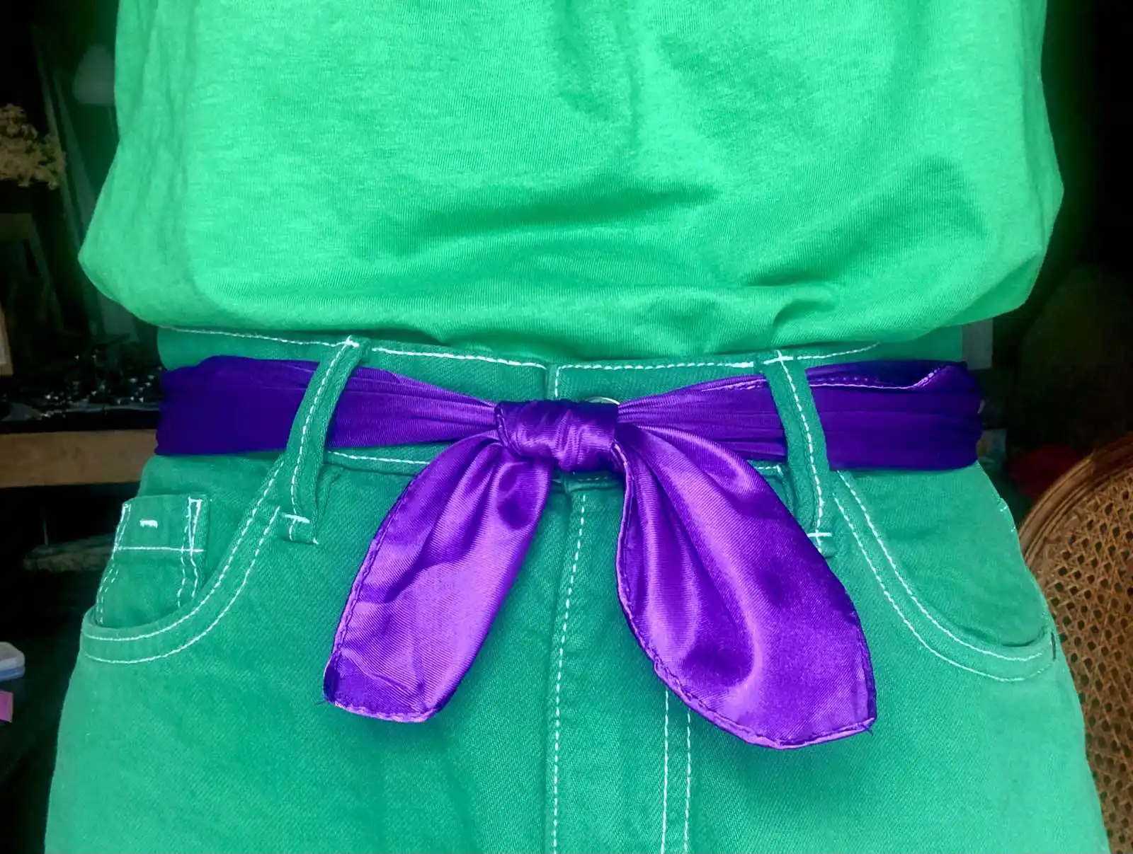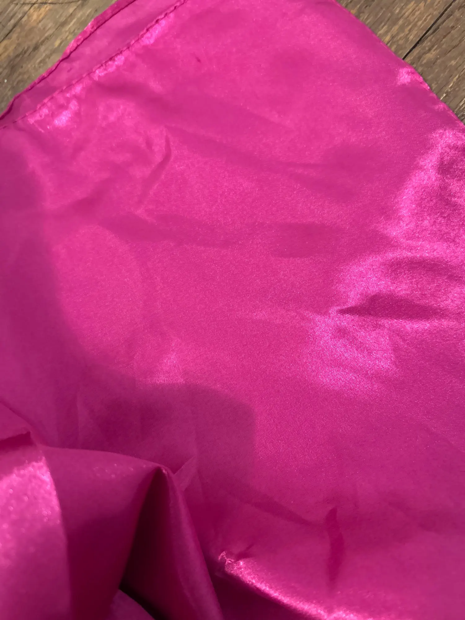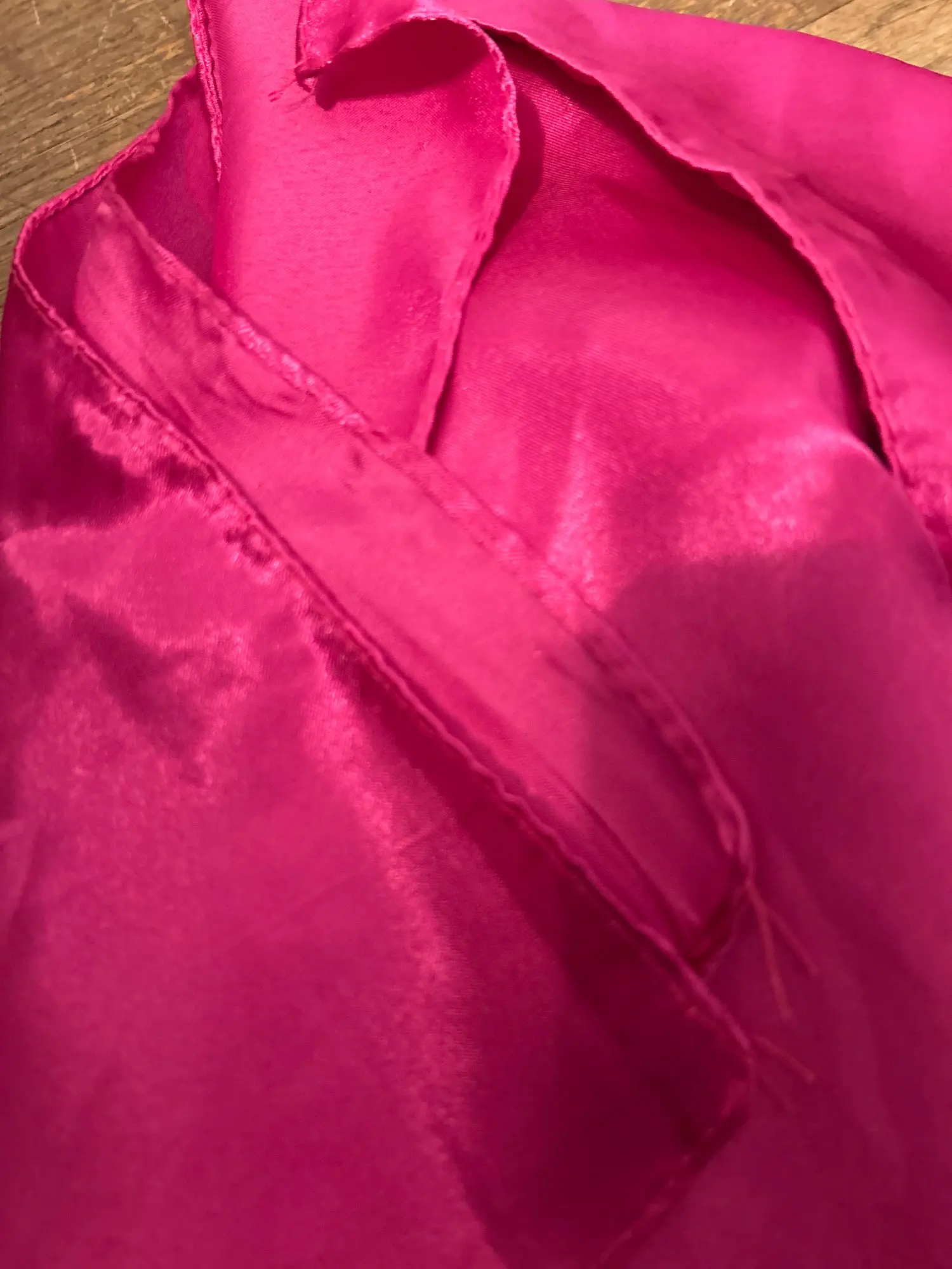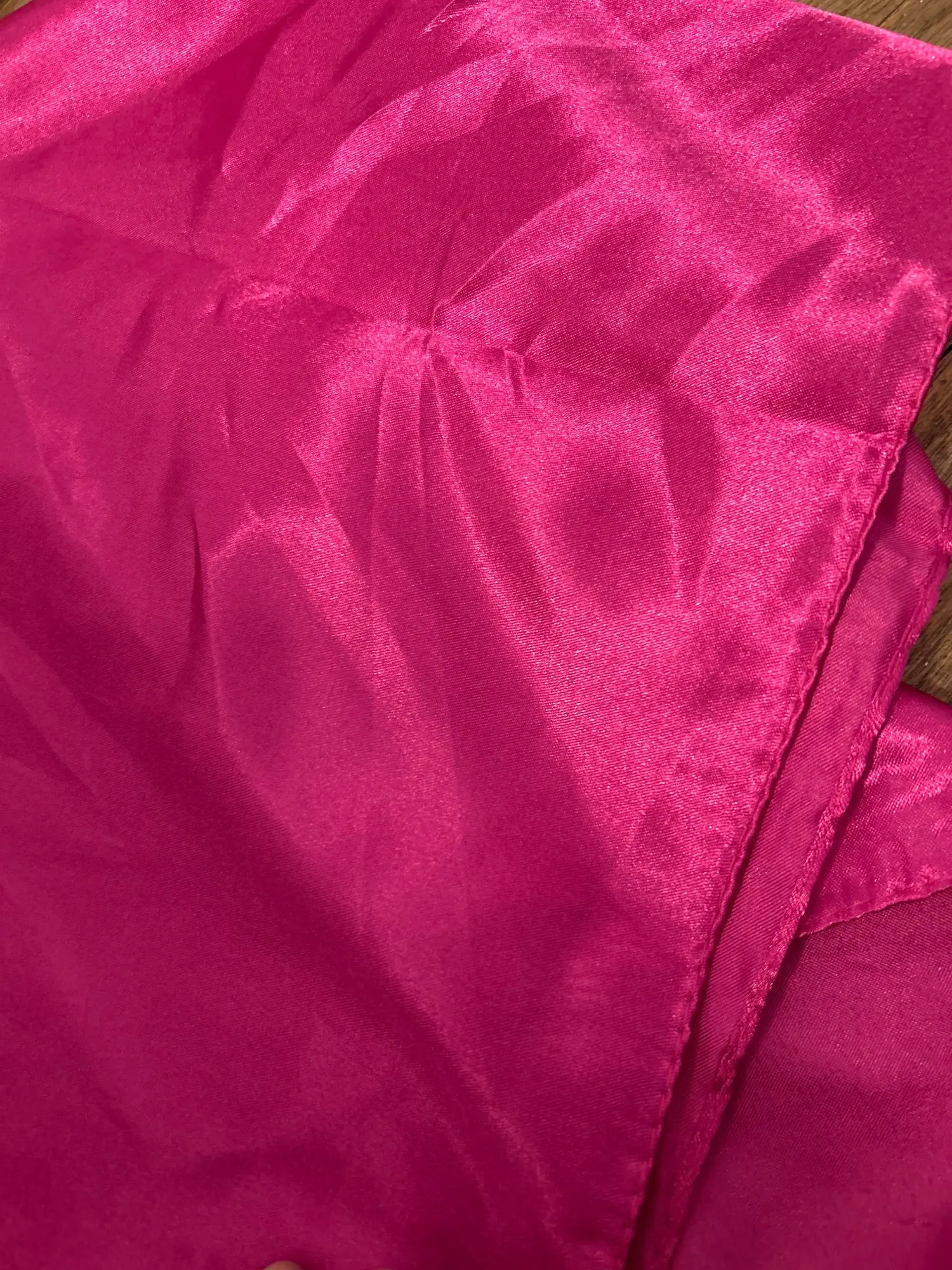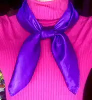 Lovely satin purple scarf, great for many purposes. Bright color, nice texture, good price. I will definitely buy some other colors in the near future. Thanks a lot!