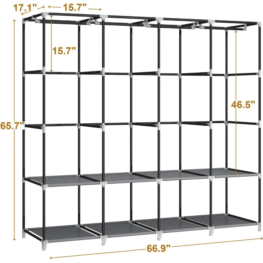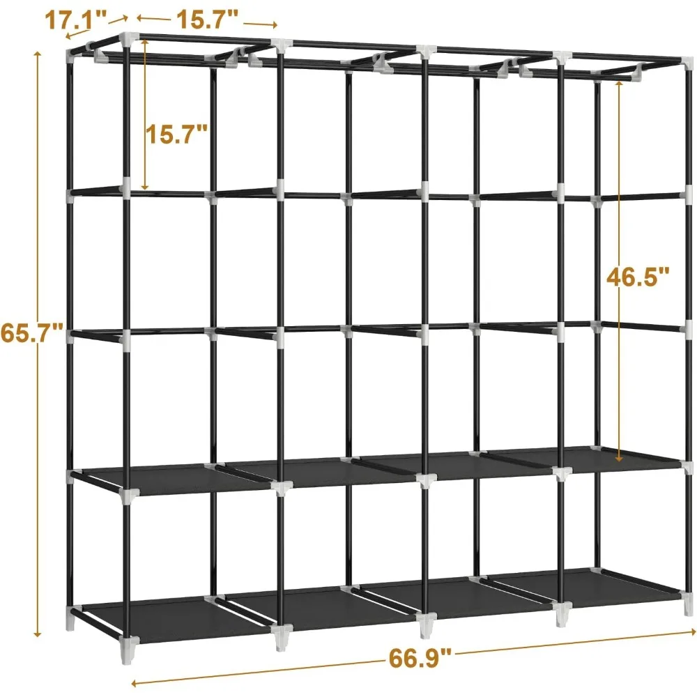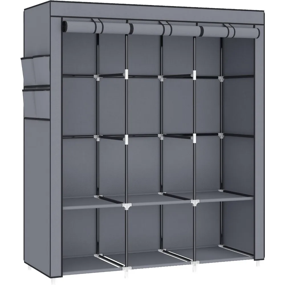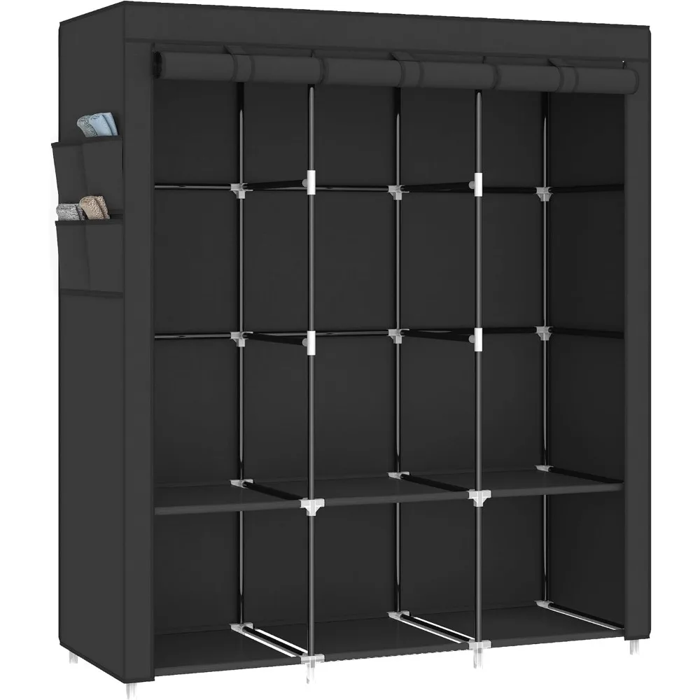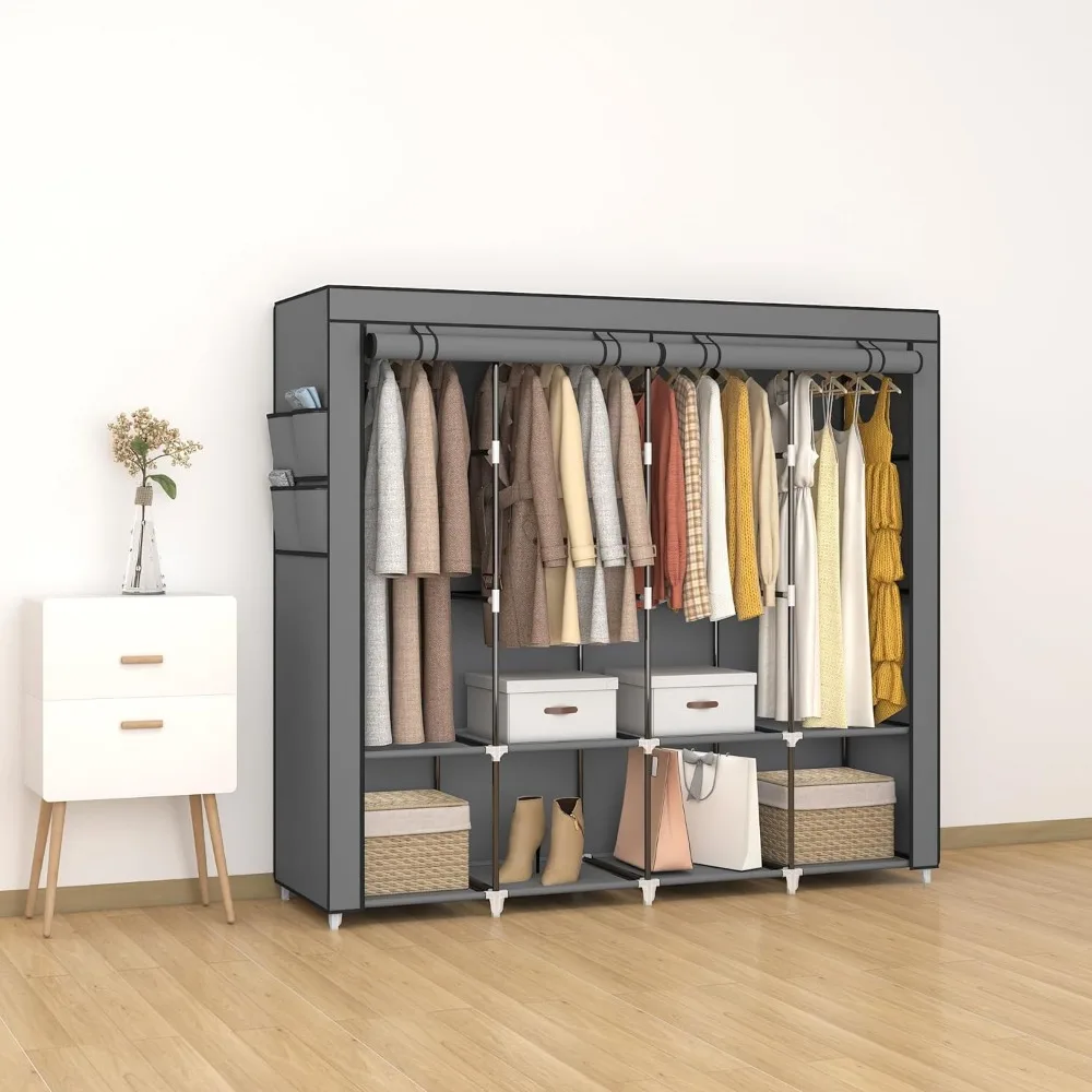 - 𝐑𝐨𝐨𝐦𝐲 𝐖𝐚𝐫𝐝𝐫𝐨𝐛𝐞: This portable closet wardrobe consists of 3 movable hanging rods for clothes, jackets, dresses, coats; 6 storage shelves for folded clothes, bags, hats, accessories, underwear and socks. It will increase space usage of your bedroom.