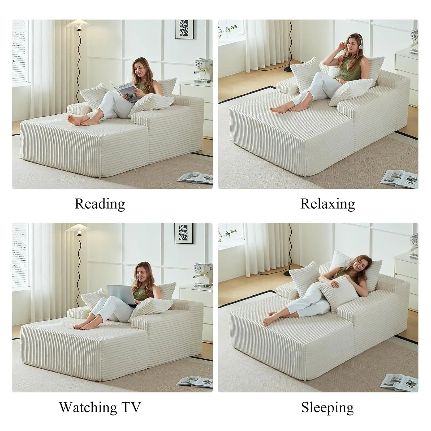 No Assembly Needed: Skip complicated setups! This folding floor couch arrives ready to use. let it naturally expand to full fluffiness within 48 hours.Experience this comfort that elevates your quality of life—right from the moment you open the box.Please feel free to contact us if you have any questions about our chaise lounge, we’ll solve it within 24 hours.