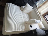 Good quality. Very soft, not corduroy, more like a chaniel type fabric. Very comfortable to sit or sleep in. Only complaint would be is that it is very low to the ground and is very hard to get out of if you are any older than 20!! !