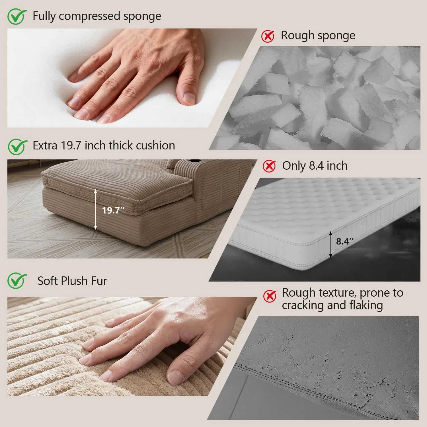 【Boneless Cloud Frame】: Combining high-resilience foam, memory foam, and cotton layers, this oversized chair achieves the perfect balance of support and bounce. Designed for lasting durability and exceptional seating comfort