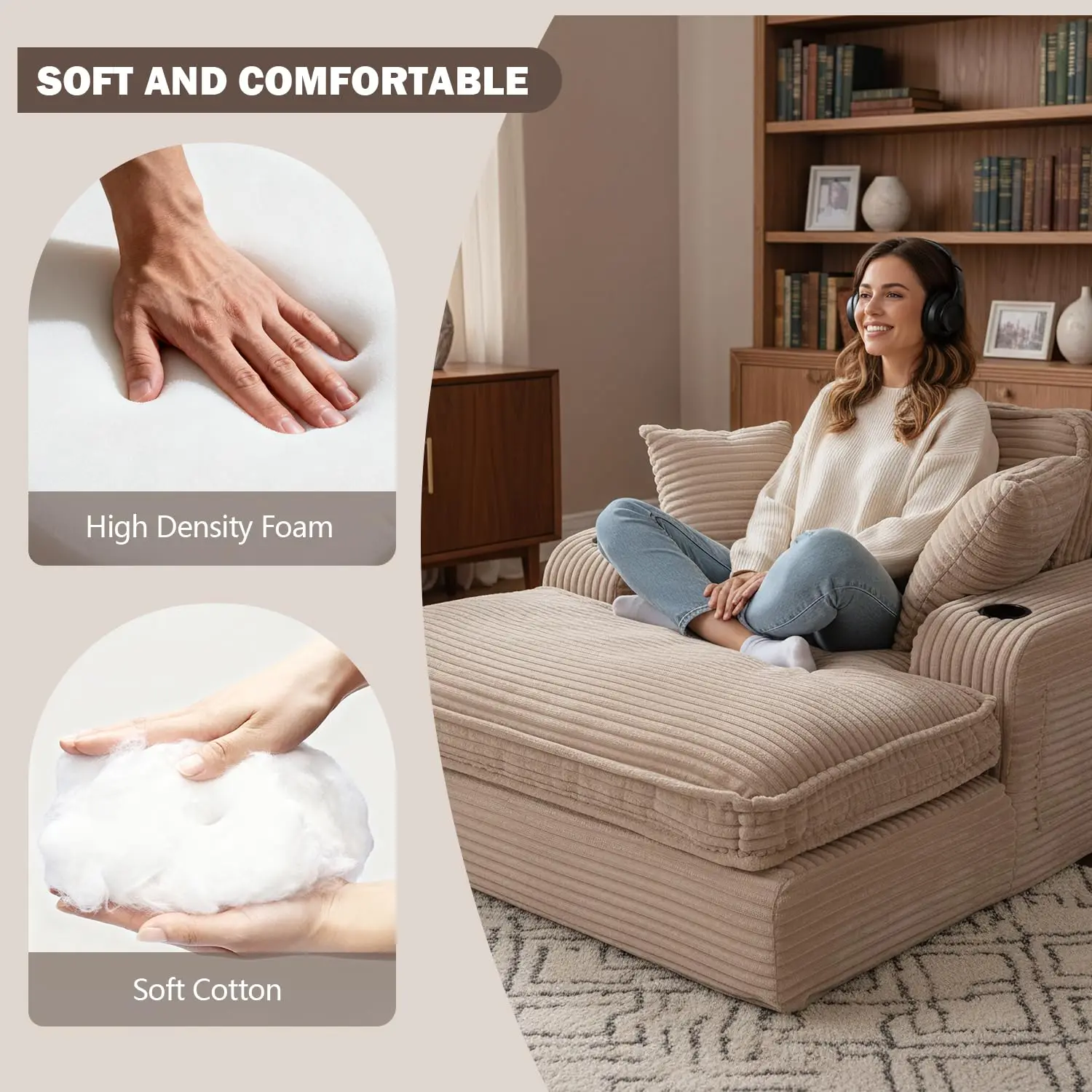 【Deep Seat Sofa】: Measuring 52”x67”x26”, this oversized chaise lounge chair offers generous space for adults to stretch out while reading, napping, or enjoying movie nights. Perfect for transforming any living room or bedroom into a cozy retreat