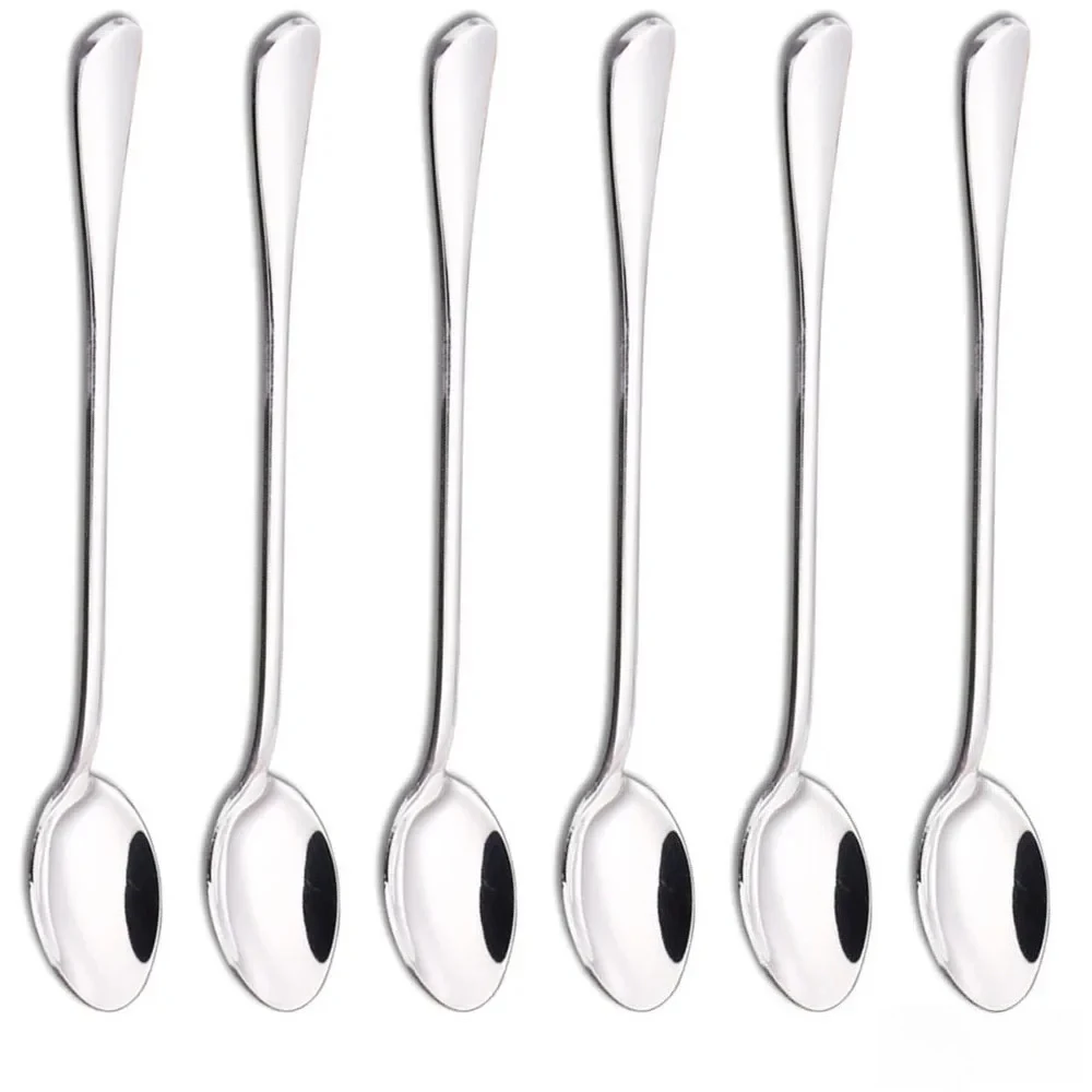 6PCS Coffee Spoon Long Handle Ice Cream Dessert Tea Spoon For Picnic Drinkware Tableware Kitchen Set Supply