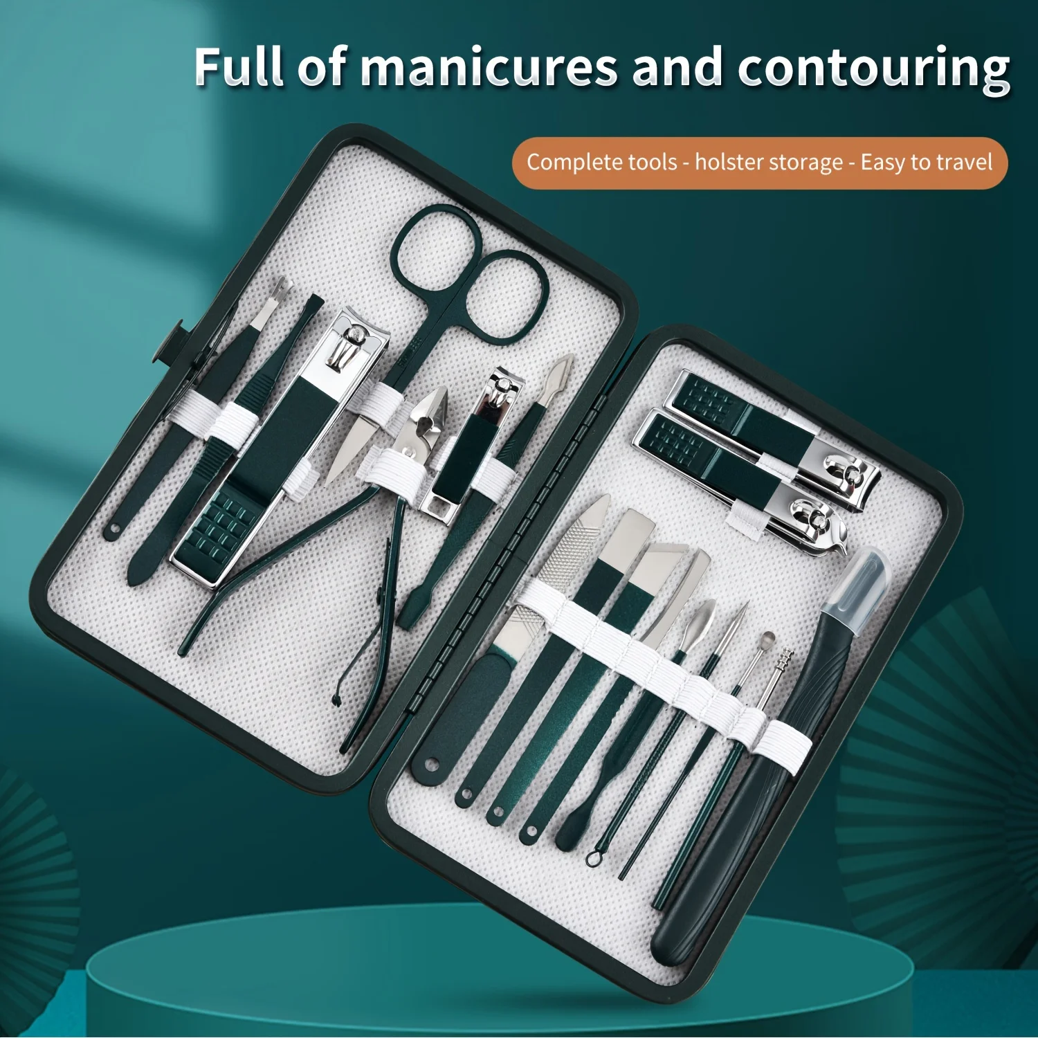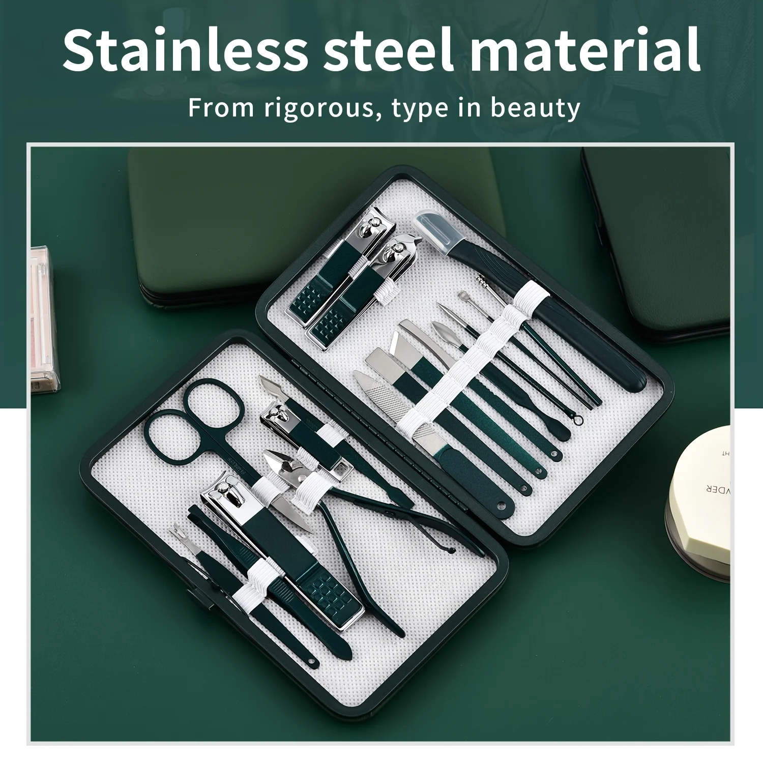 7-18 Pcs Manicure Set Nail Clippers Kit Professional Stainless Steel Nail Care Tools with Leather Travel Case For Man and Women