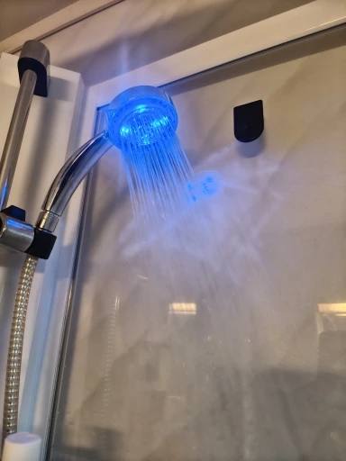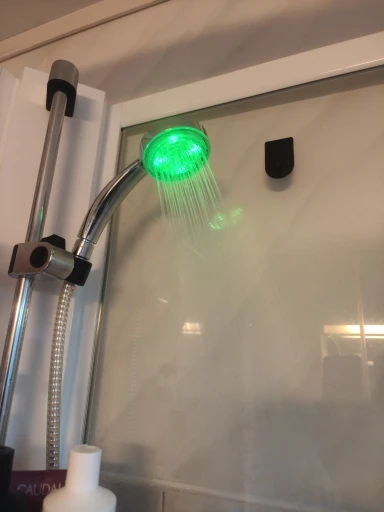 easy to attach, as soon as you turn on the water it starts the color rotation, satisfied, can’t wait to take a relaxing shower, also the water jet is quite powerful