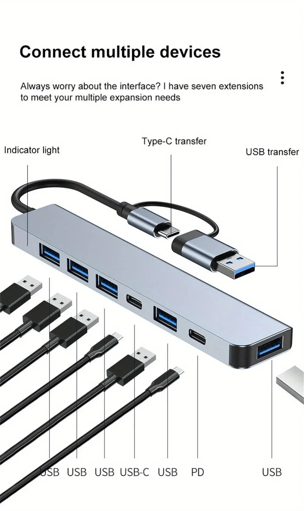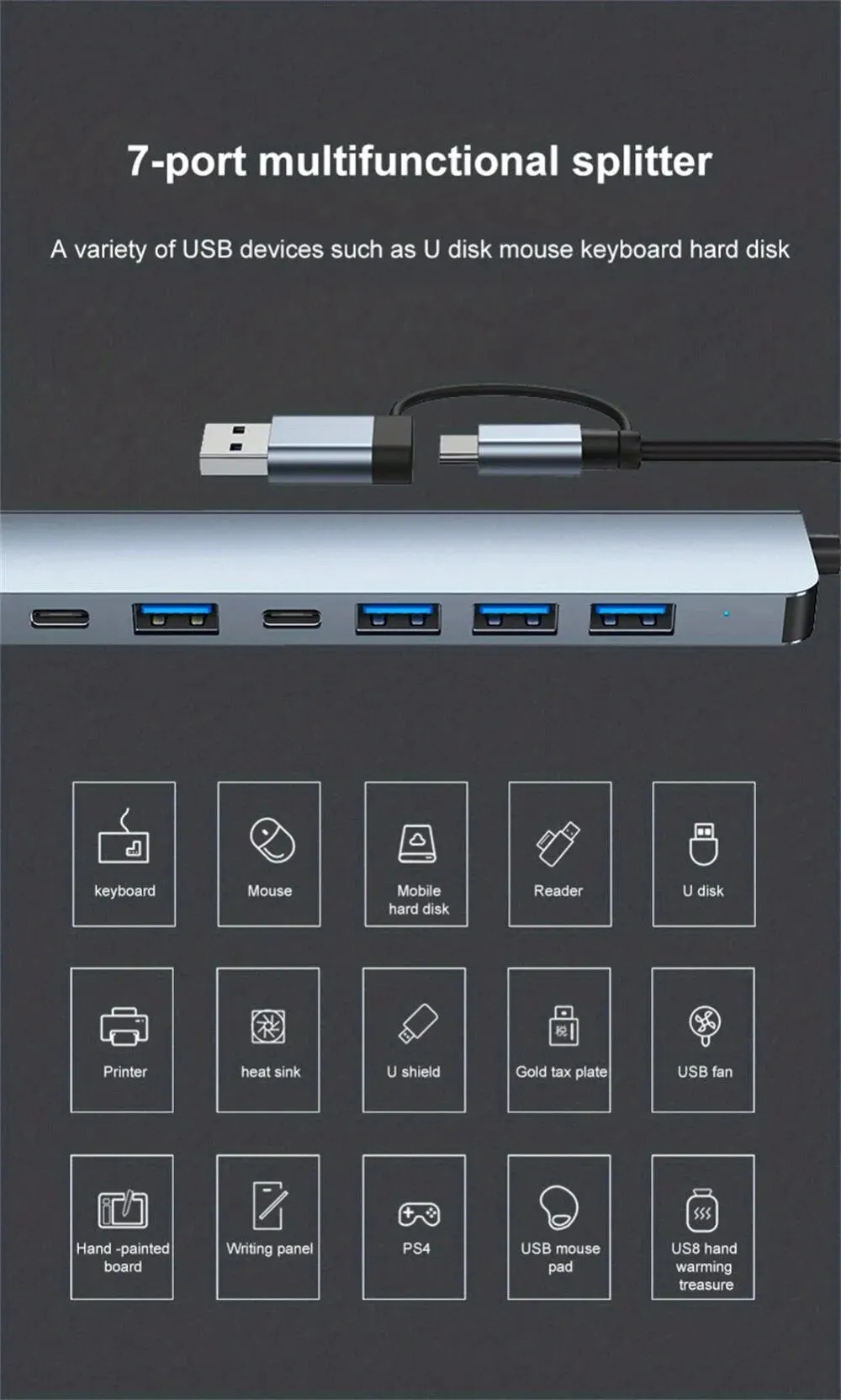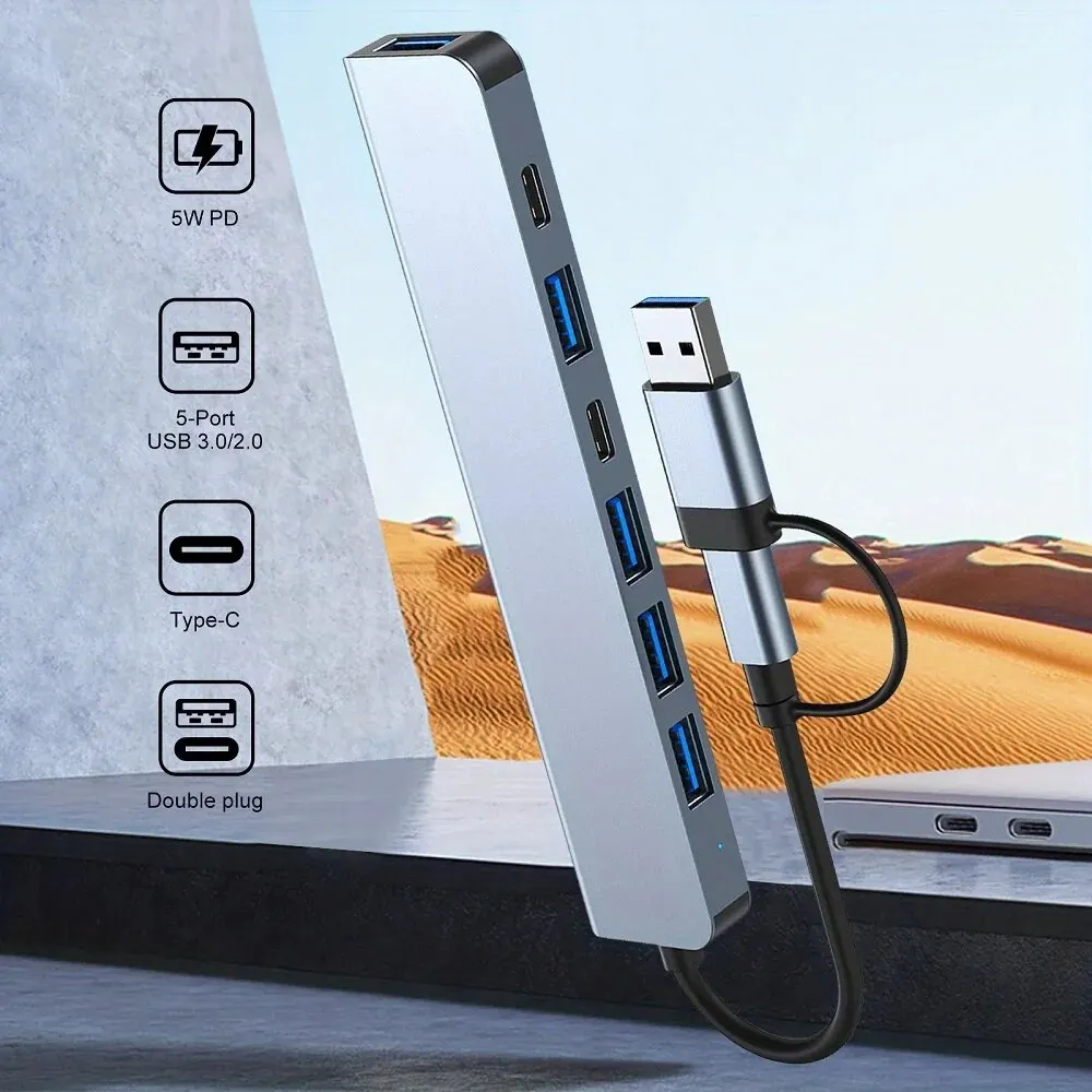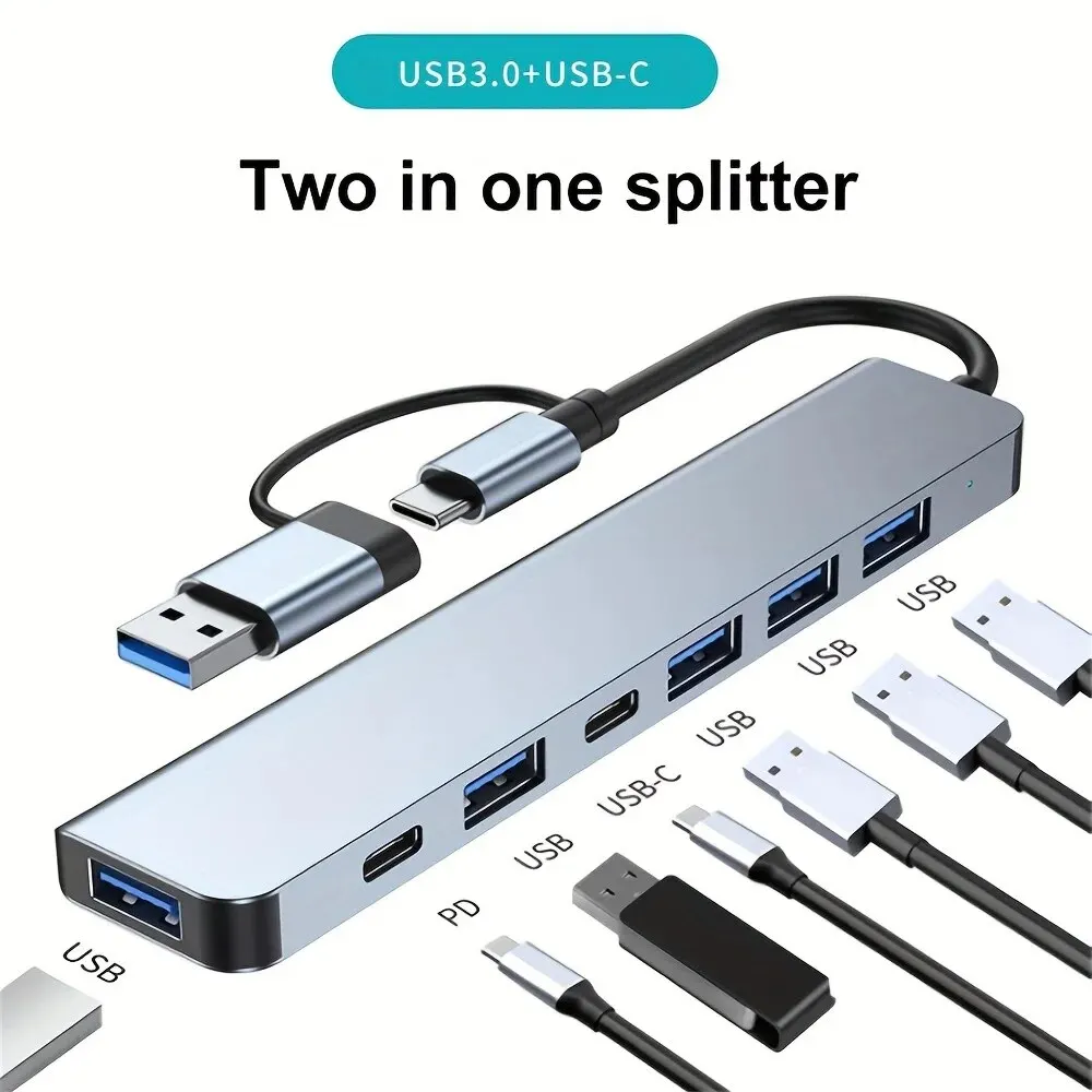 • 7-in-1 Functionality :This multi-functional USB hub combines a card reader, USB C port, USB 3.0 / 2.0, SD/TF splitter card reader, and docking station, providing a one-stop solution for your device connections.