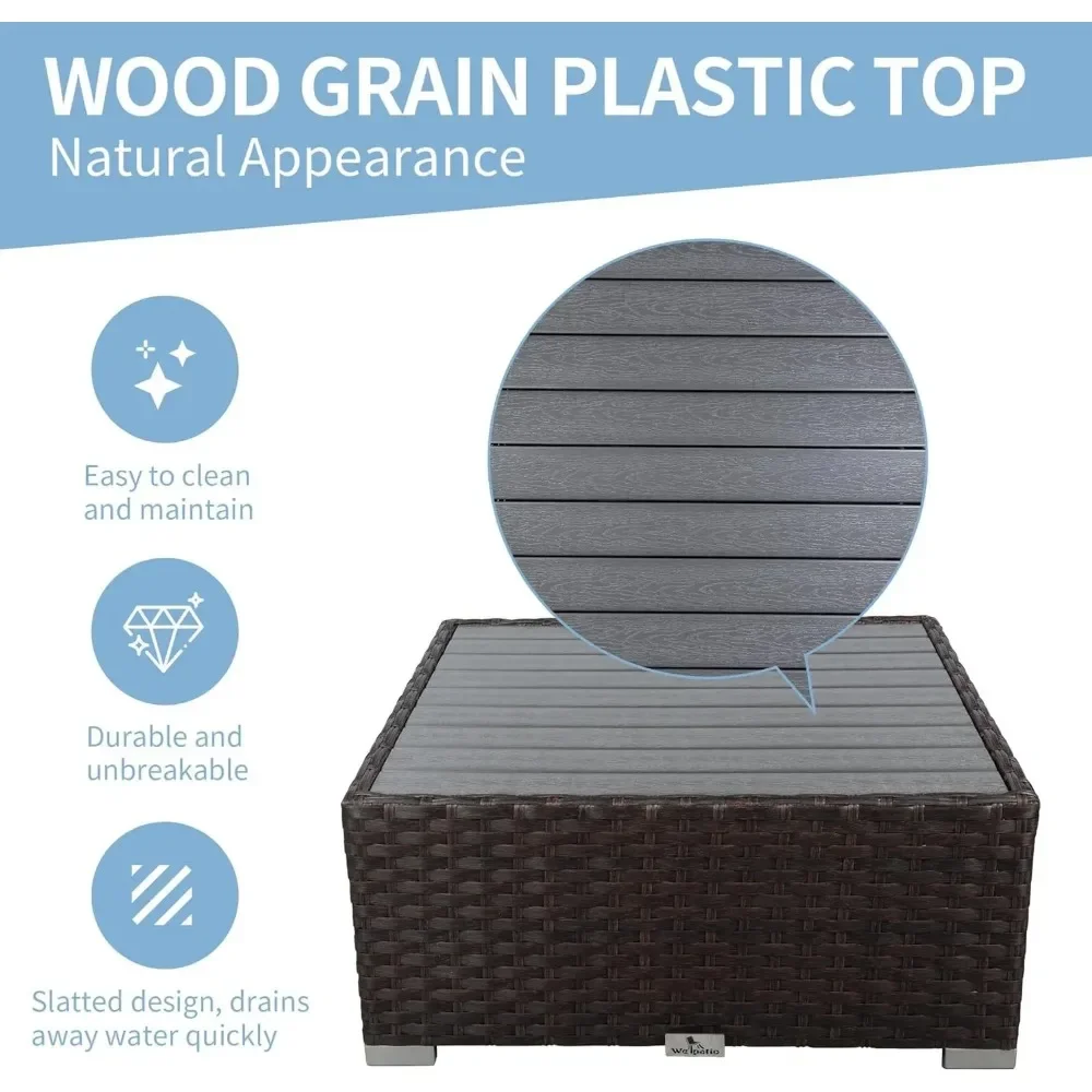 - 【Stylish Center Table】Enhance your outdoor couch set with our stylish center tea table. It has a wood grain plastic top and offers water resistance, natural beauty-the perfect size for drinks, snacks, or more.
